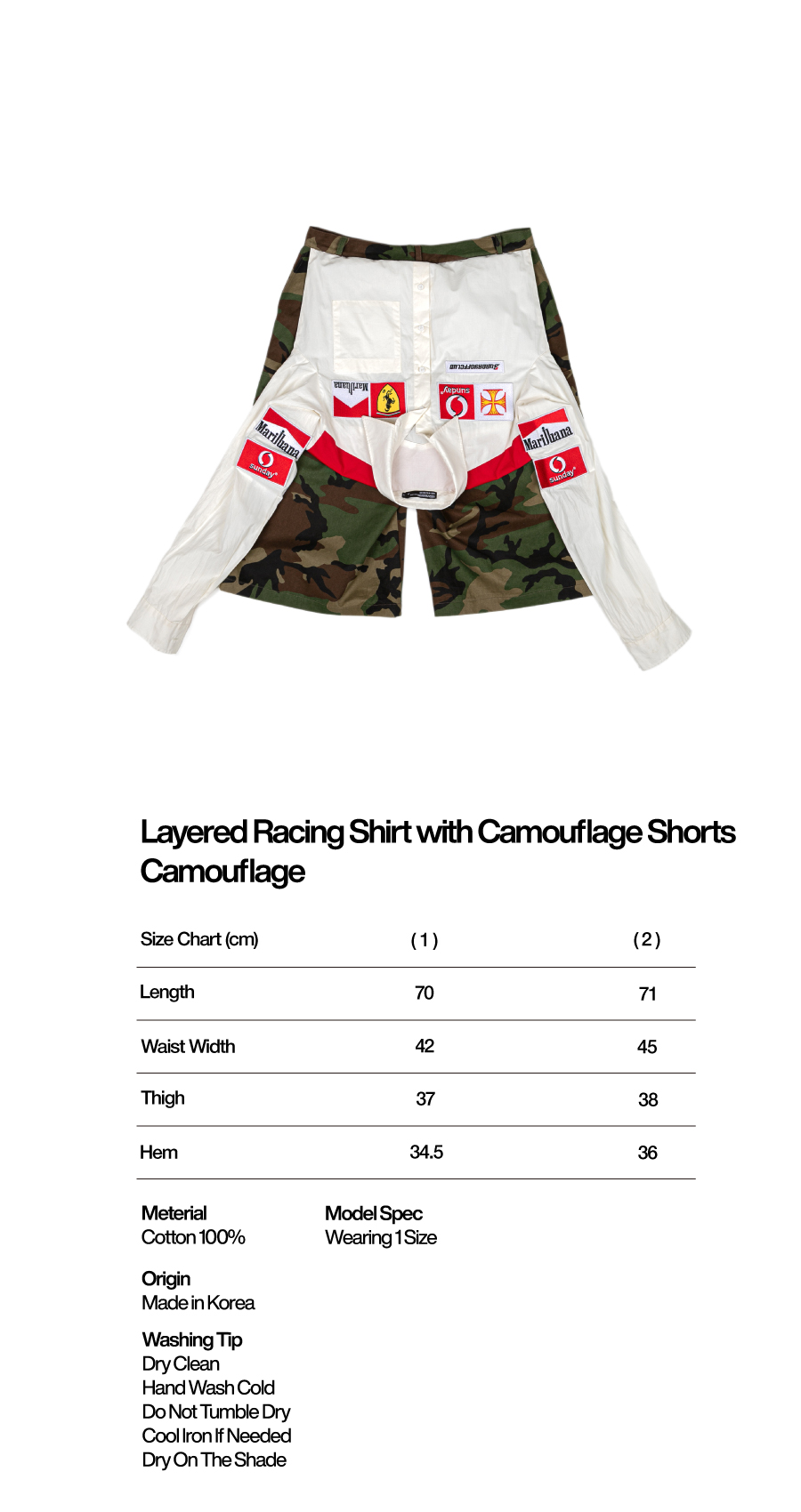 선데이오프클럽 레이어드 레이싱 셔츠 위드 카모플라주 쇼츠 카모