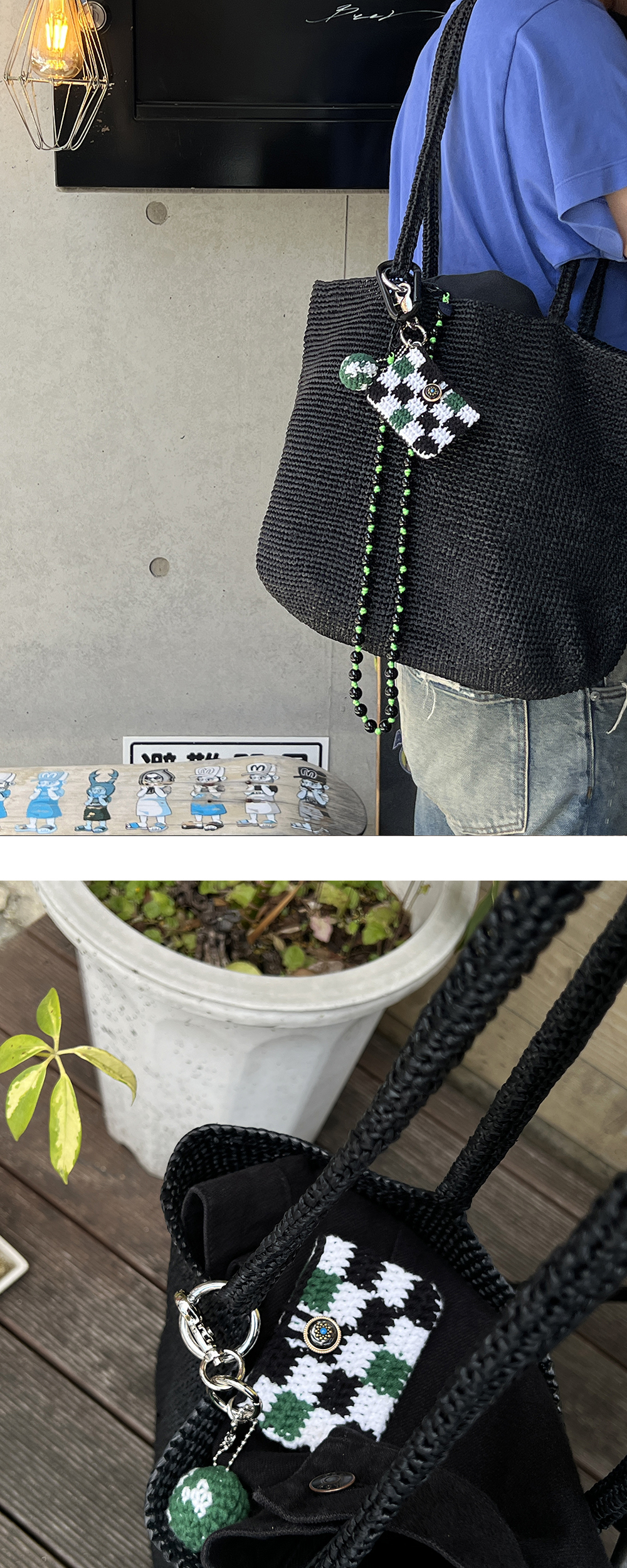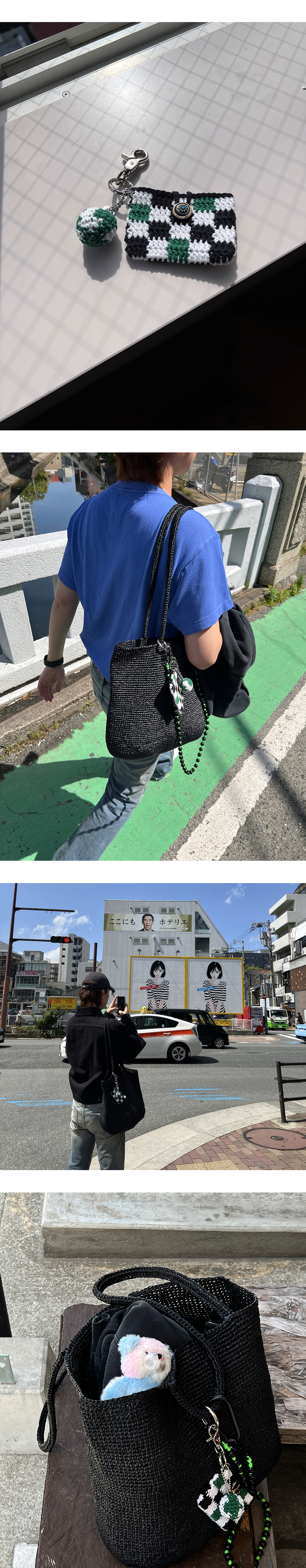 [ALEXII] EARTH CARD CASE GREEN 코바늘로 떠서 제작된 카드지갑 겸용 키링입니다. 바둑판 체크무늬와 미니 지구참이 포인트이며 하의에 키링으로 달아주거나 가방 등에 걸어서 꾸며주기에 좋은 아이템입니다. -Item : Card case / Keyring -Material Fabric : Cotton 65% + Acrylic 35% Pendant : Surgical steel Hook closure, Oring : Zinc + Rhodium Plating - MADE IN KOREA - 사용연령: 14세 이상사용가능합니다. SIZE & FIT Card case : 9 X 6.5 CM