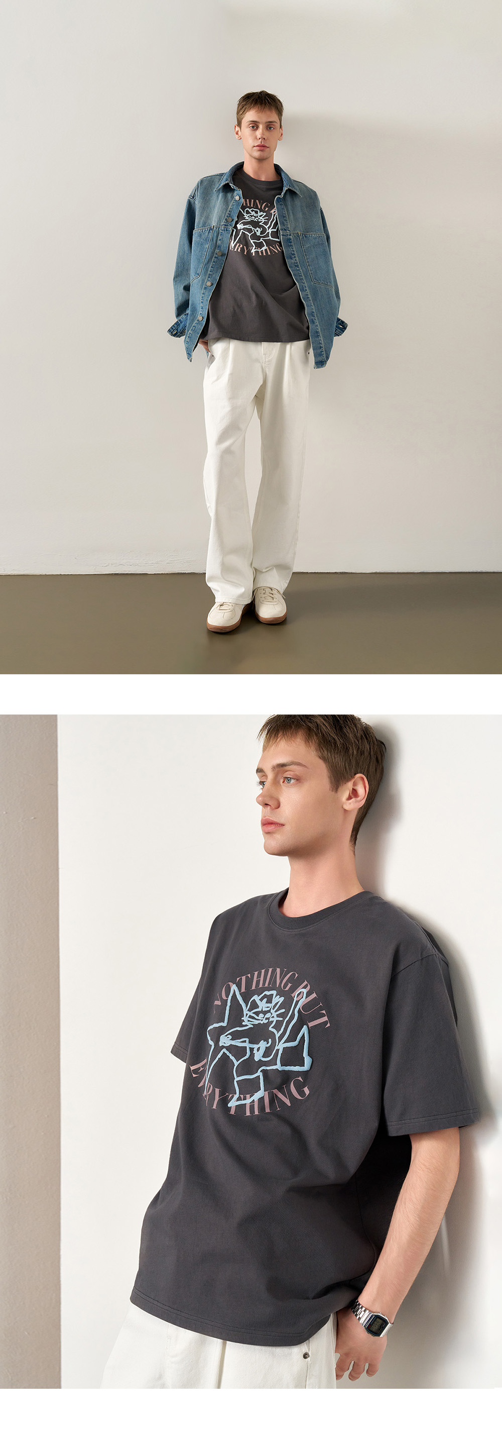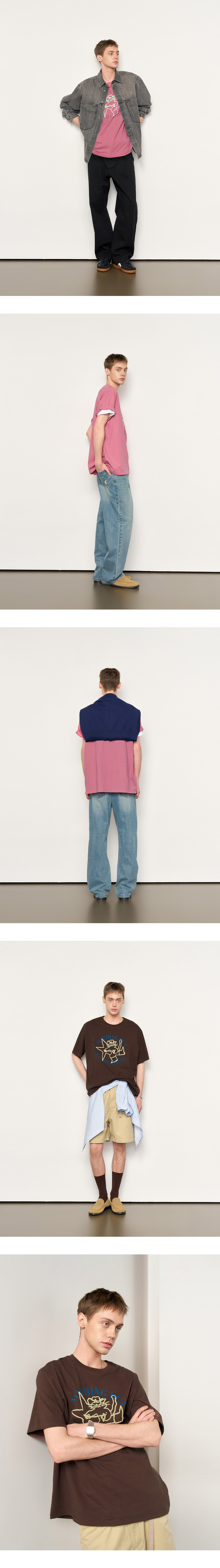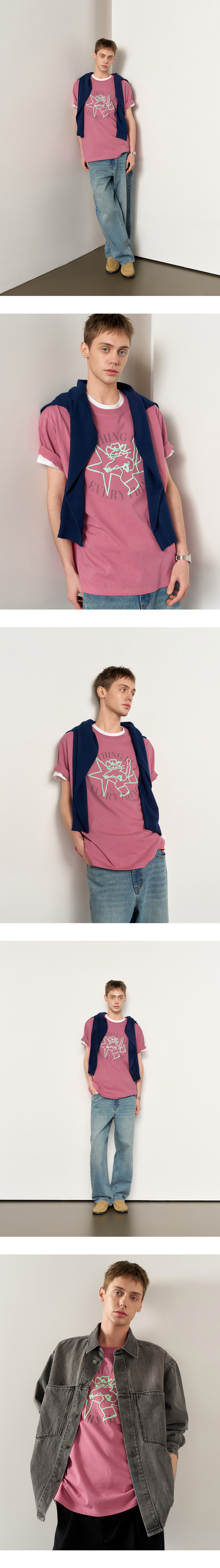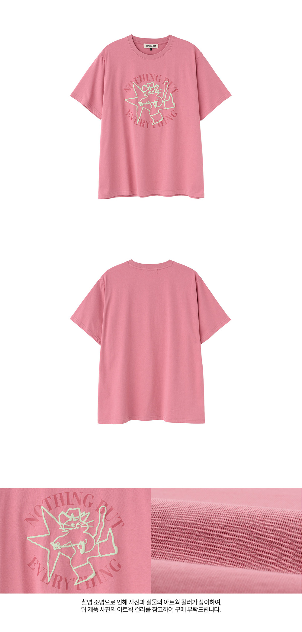 제너럴아이디어 유니섹스 웨스턴 캣 루즈핏 반팔티 핑크