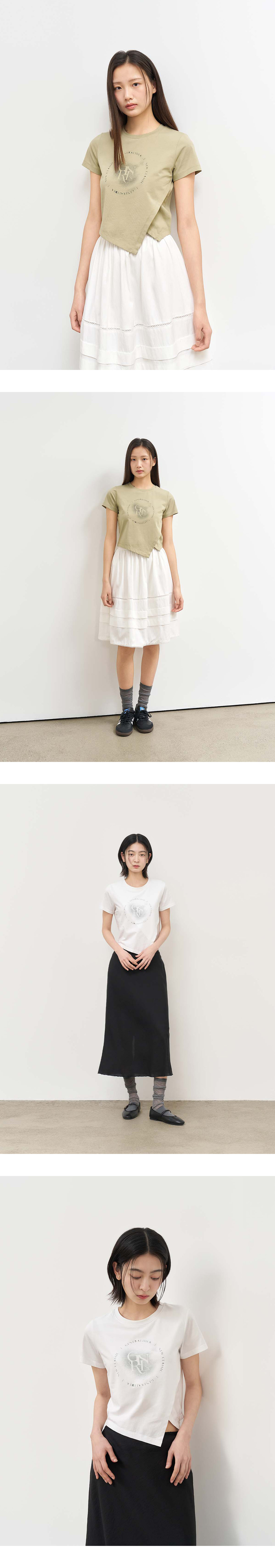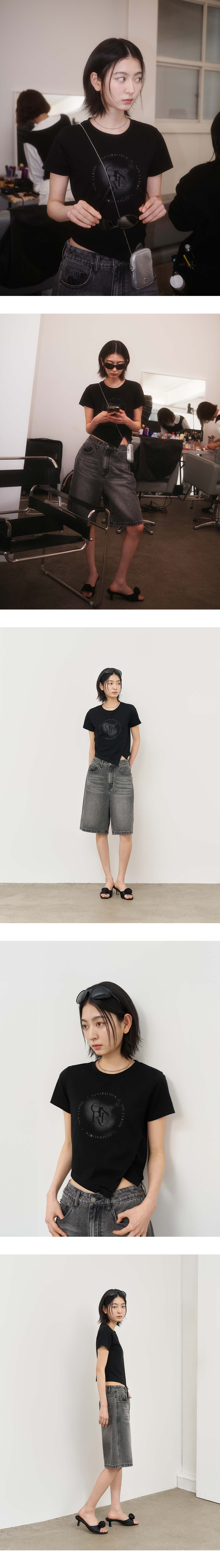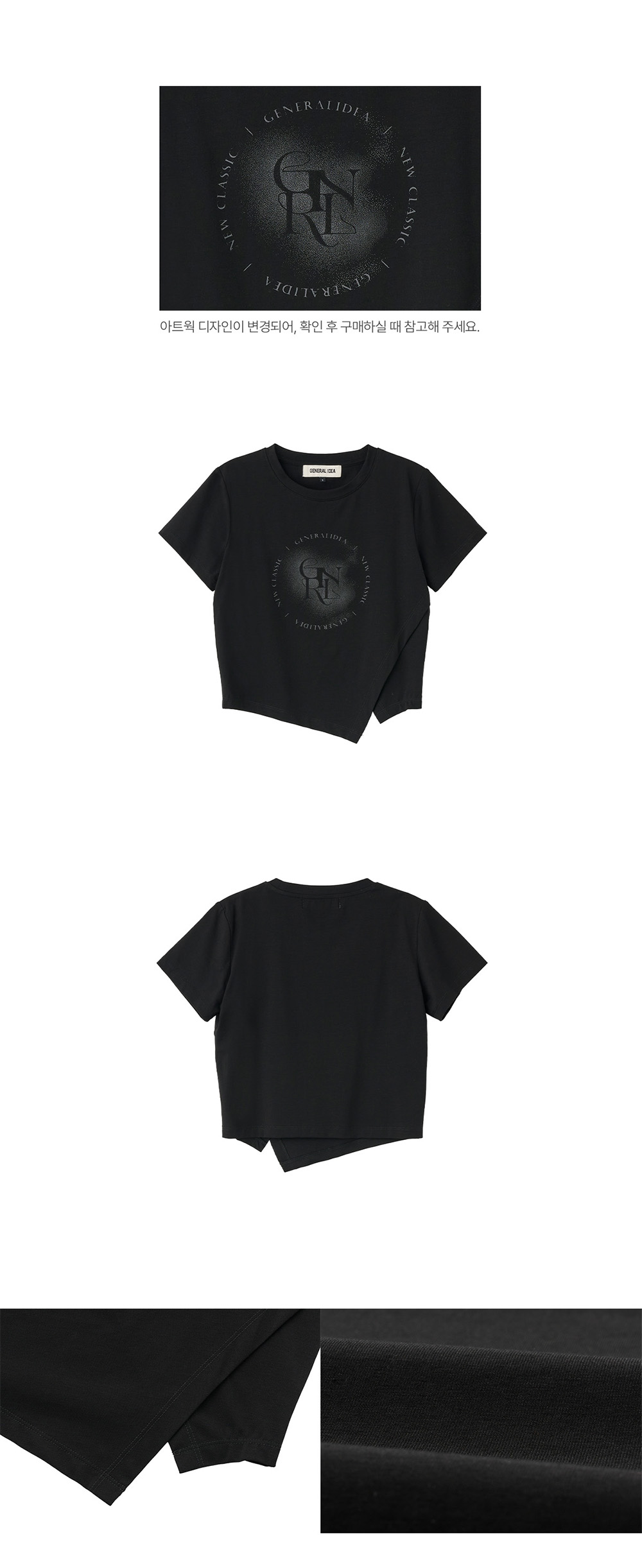 제너럴아이디어 우먼 언밸런스 실켓 스판 아트웍 반팔티 블랙