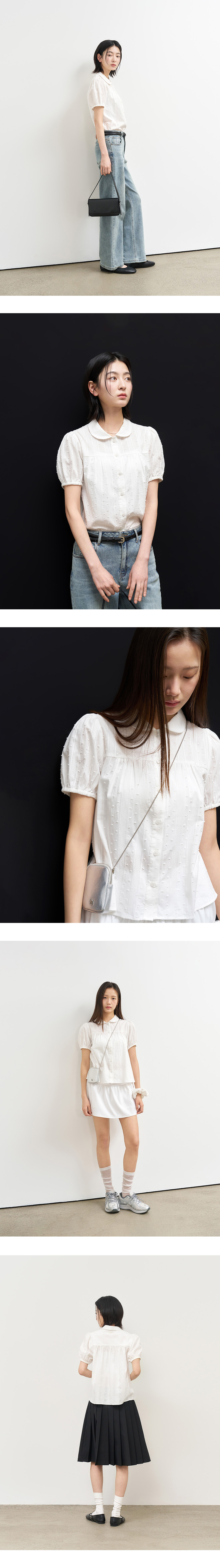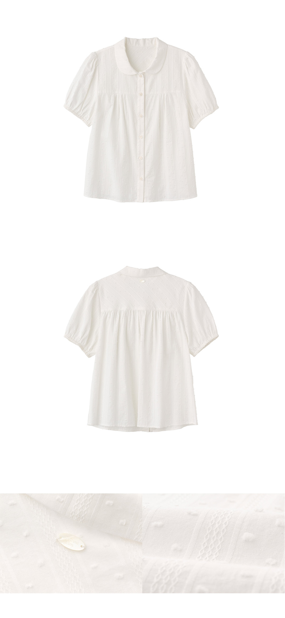 제너럴아이디어 우먼 라운드 카라 퍼프 블라우스 화이트