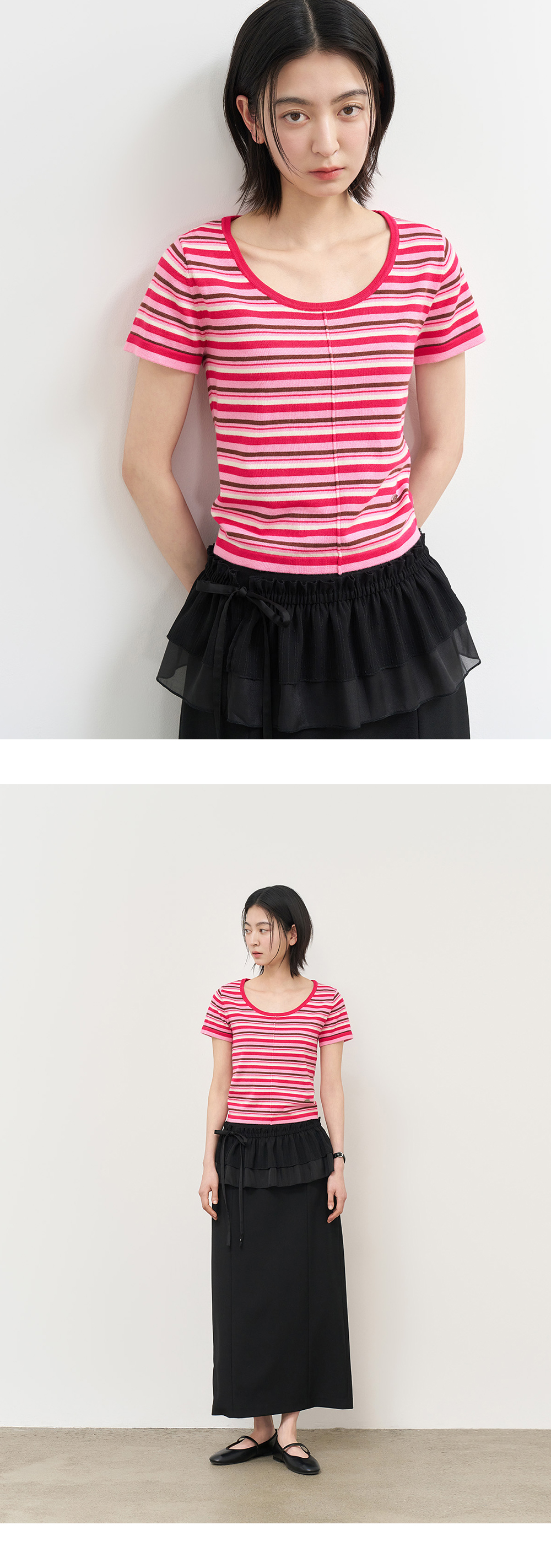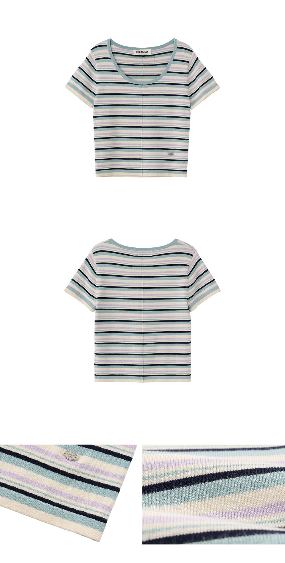 제너럴아이디어 우먼 멀티 스트라이프 유넥 하프 니트 민트
