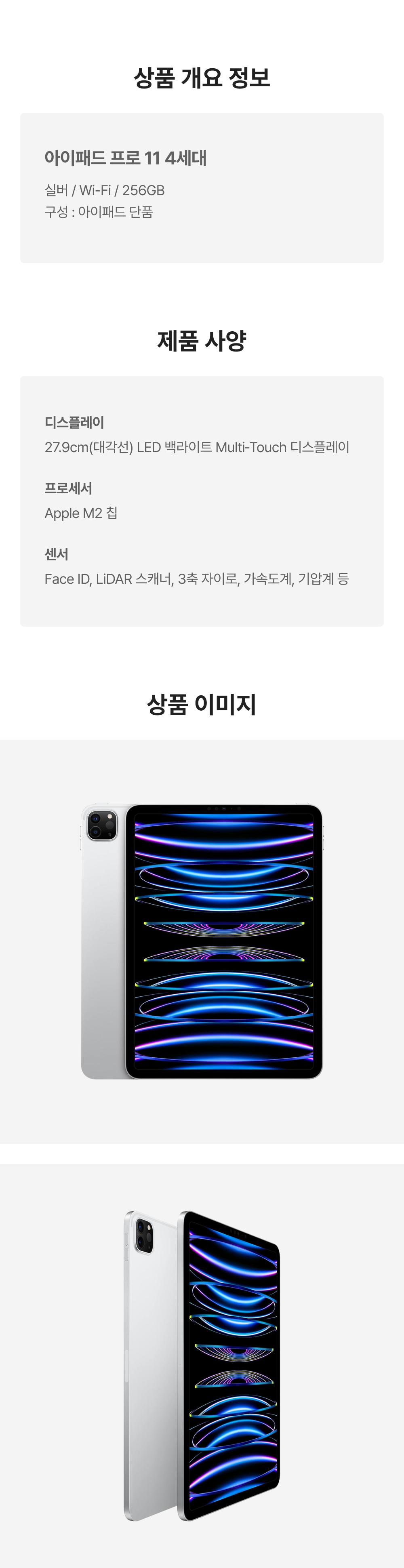 [S등급] 리퍼비시 아이패드 프로 11 4세대 wifi Apple M2 256기가 실버