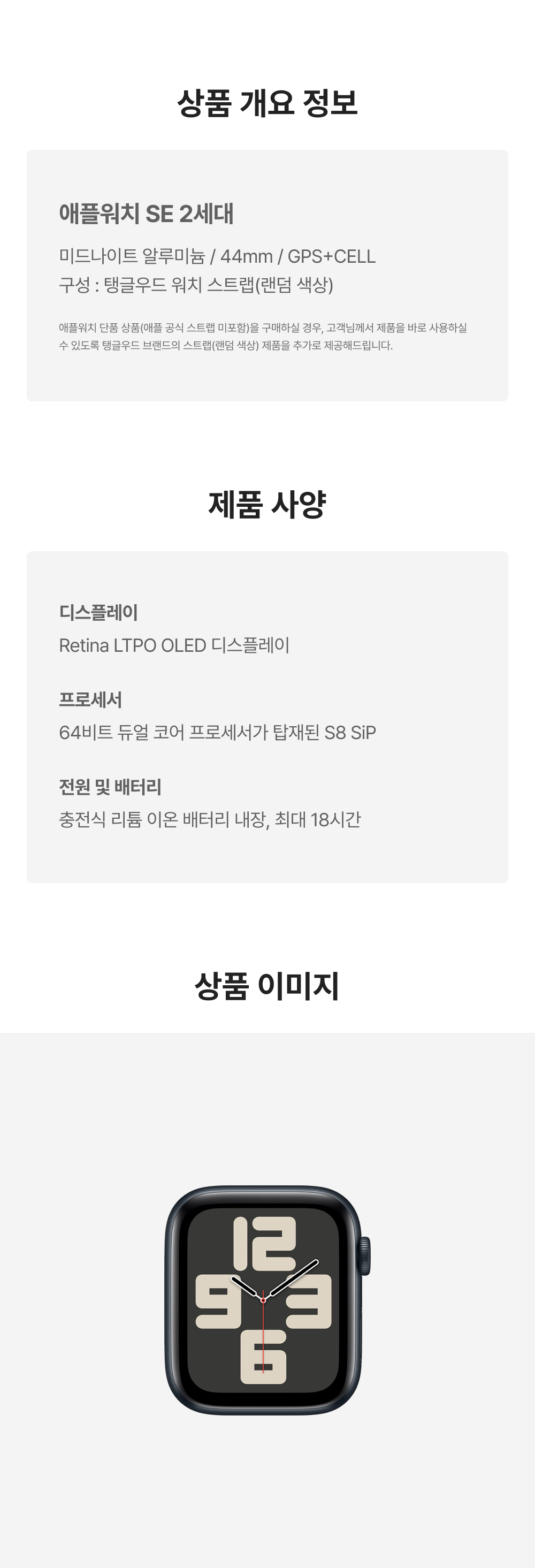 [A등급] 리퍼비시 애플워치 SE 2세대 44mm 셀룰러 미드나이트 알루미늄 케이스