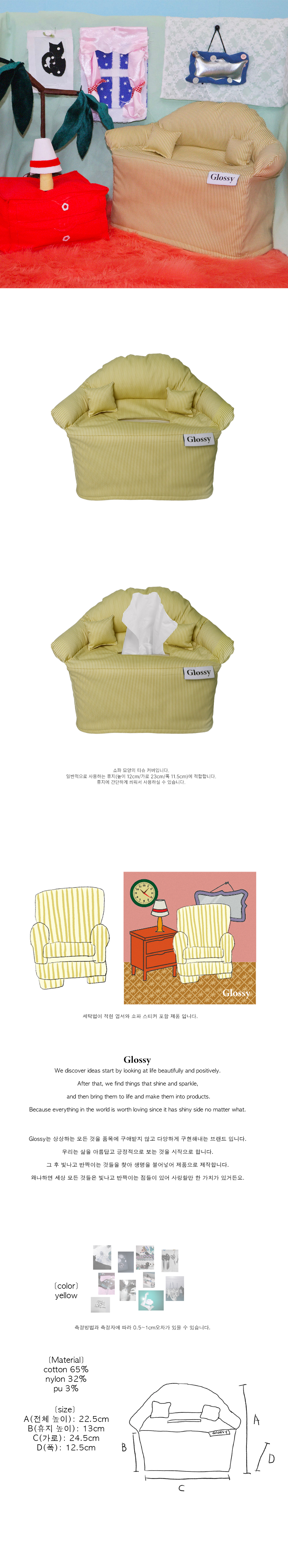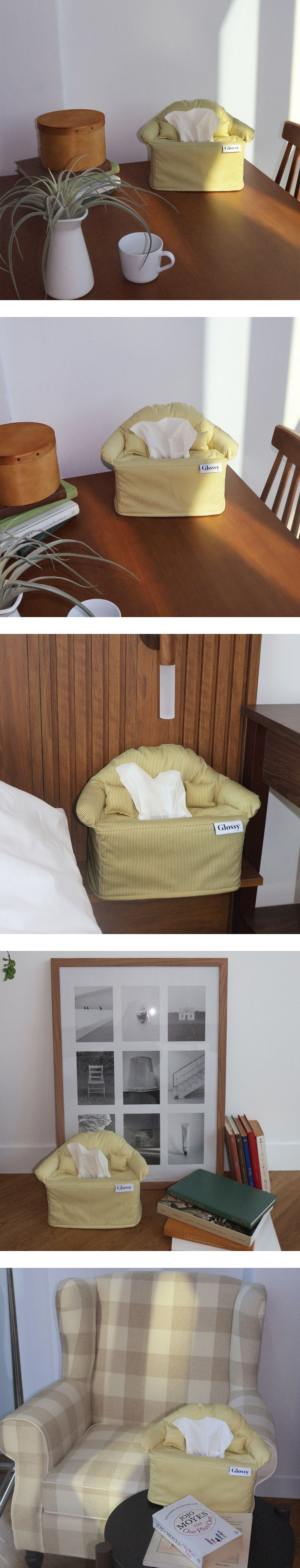 일상에 달콤함을 줄 소파 모양의 티슈 커버입니다. 일반적으로 사용하는 휴지(높이 12cm/가로 23cm/폭 11.5cm)에 적합합니다. 휴지에 간단하게 씌워서 사용하실 수 있습니다. 정확한 사이즈는 상세페이지 참조 부탁드립니다. 원단: 면 65% 나일론 32% 폴리우레탄 3% * 제품과 함께 동봉되는 세탁법 카드를 꼭 참조하여 세탁해주세요.