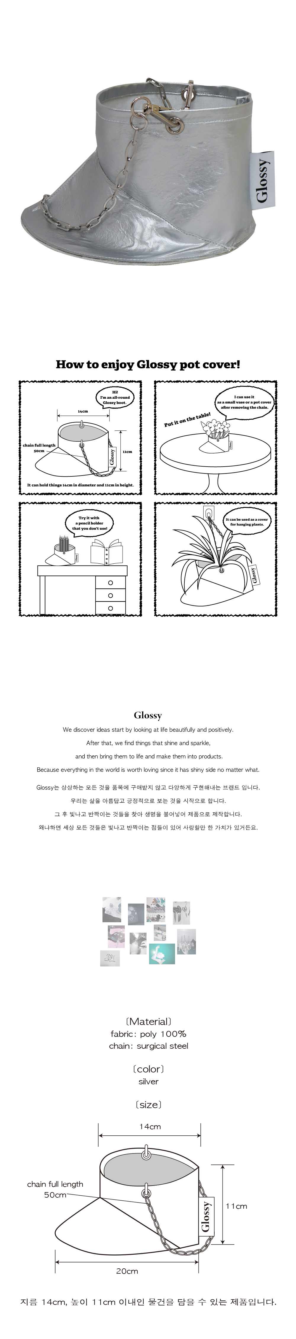 부츠 모양의 팟 커버 입니다. 팟 커버 뿐만 아니라 지름 14cm, 높이 11cm 이내의 화병 및 연필 꽂이 커버 등 다양하게 사용 가능합니다. 체인은 탈부착이 가능하여, 체인을 걸어 행잉 플랜트 커버로도 사용 가능합니다. 사이즈: 너비 20cm*높이*11cm/내부 지름: 14cm 겉감: 면 100% 세탁방법 * 중성세제를 사용하여 단독 손세탁 해주세요.(세탁기 사용 금지) * 건조시 입구가 바닥으로 향하여 평평한 곳에서 거꾸로 건조해주세요.(건조기 사용 금지) * 다리미 이용시 100도 이하해서 해주세요.