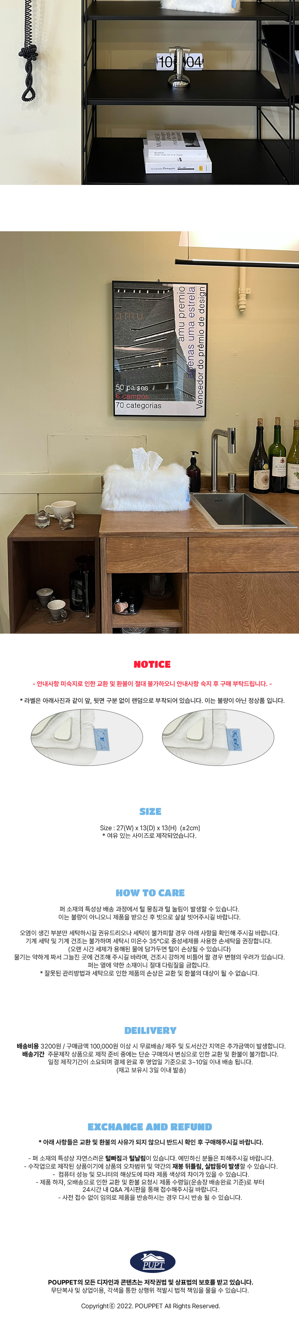 [3% 적립] POUPPET Fur-ppet Tissue Case White
