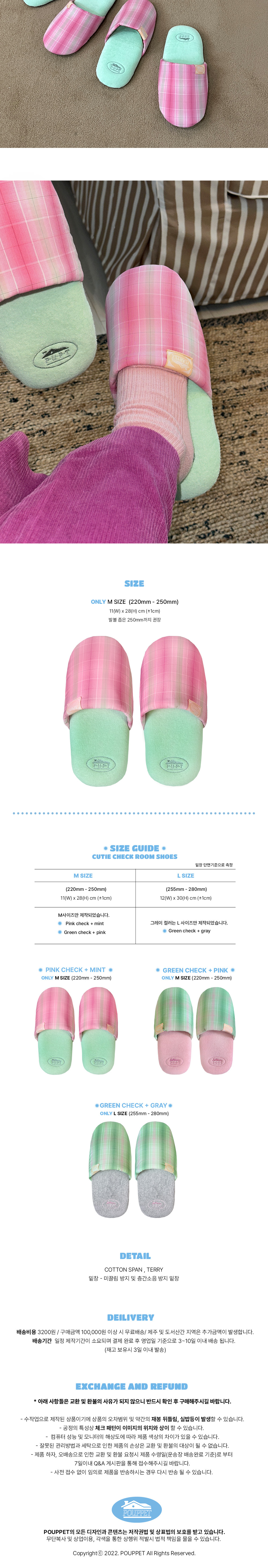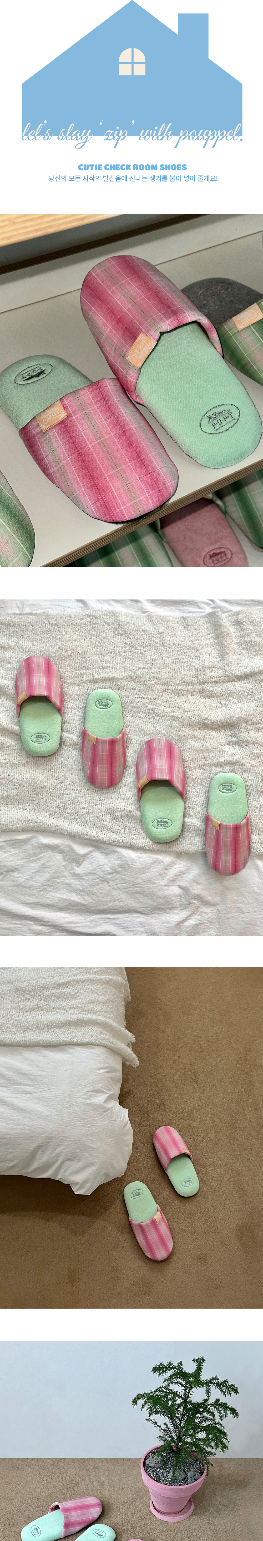 [3% 적립] POUPPET Cutie Check Room Shoes Pink check + mint M size