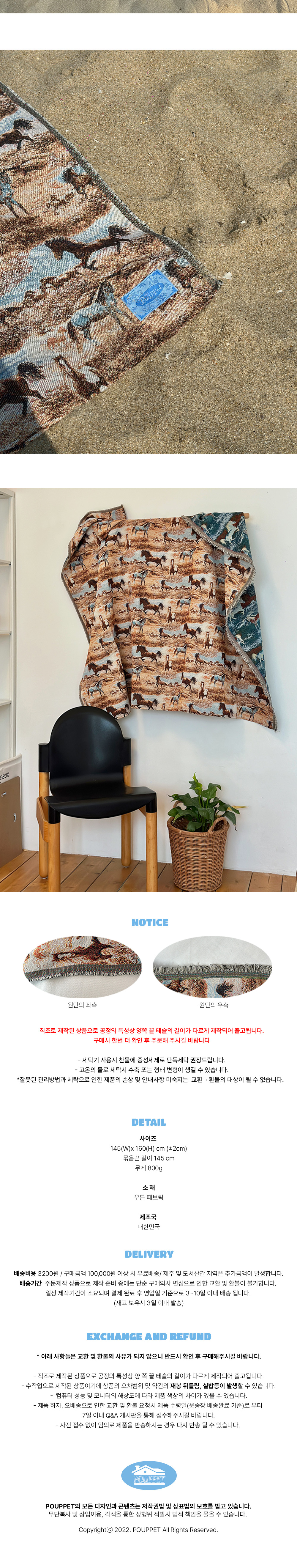 [3% 적립] POUPPET Wild Horse Picnic Mat & Blanket