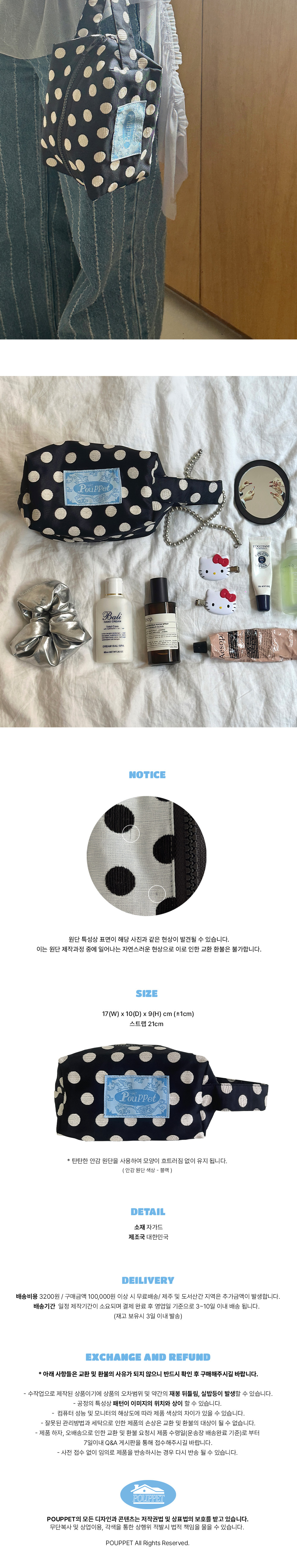 [3% 적립] 푸펫 실키 도트 파우치 네이비