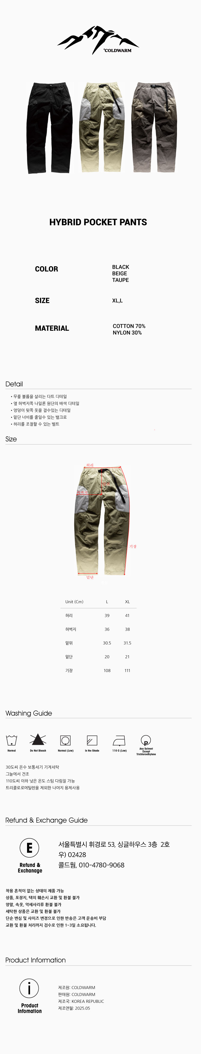콜드웜 하이브리드 포켓 팬츠 블랙 스몰핏