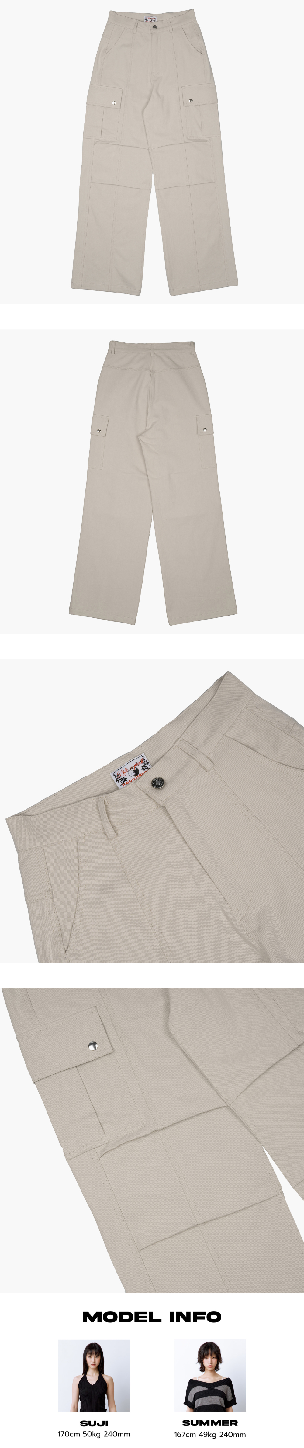 더블 턱 디테일로 구조적인 실루엣을 살린 스트레이트 핏 팬츠입니다. 허벅지부터 밑단까지 여유롭게 떨어지는 라인이 다리를 곧고 길어 보이게 해줍니다. 깔끔한 디자인에 사이드 카고 포켓과 실버 버튼 디테일을 더했습니다. 튼튼한 면 소재로 사계절 내내 활용하기 좋은 베이직 아이템입니다. Model size : SUJI 170cm 50kg / SUMMER 167cm 49kg Fitting size : S Material : Cotton 100%