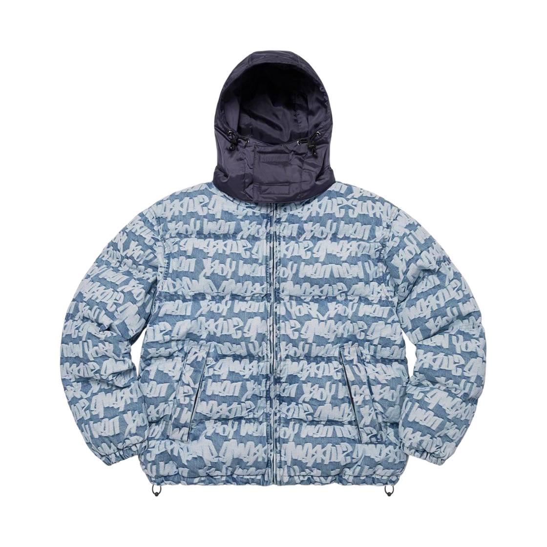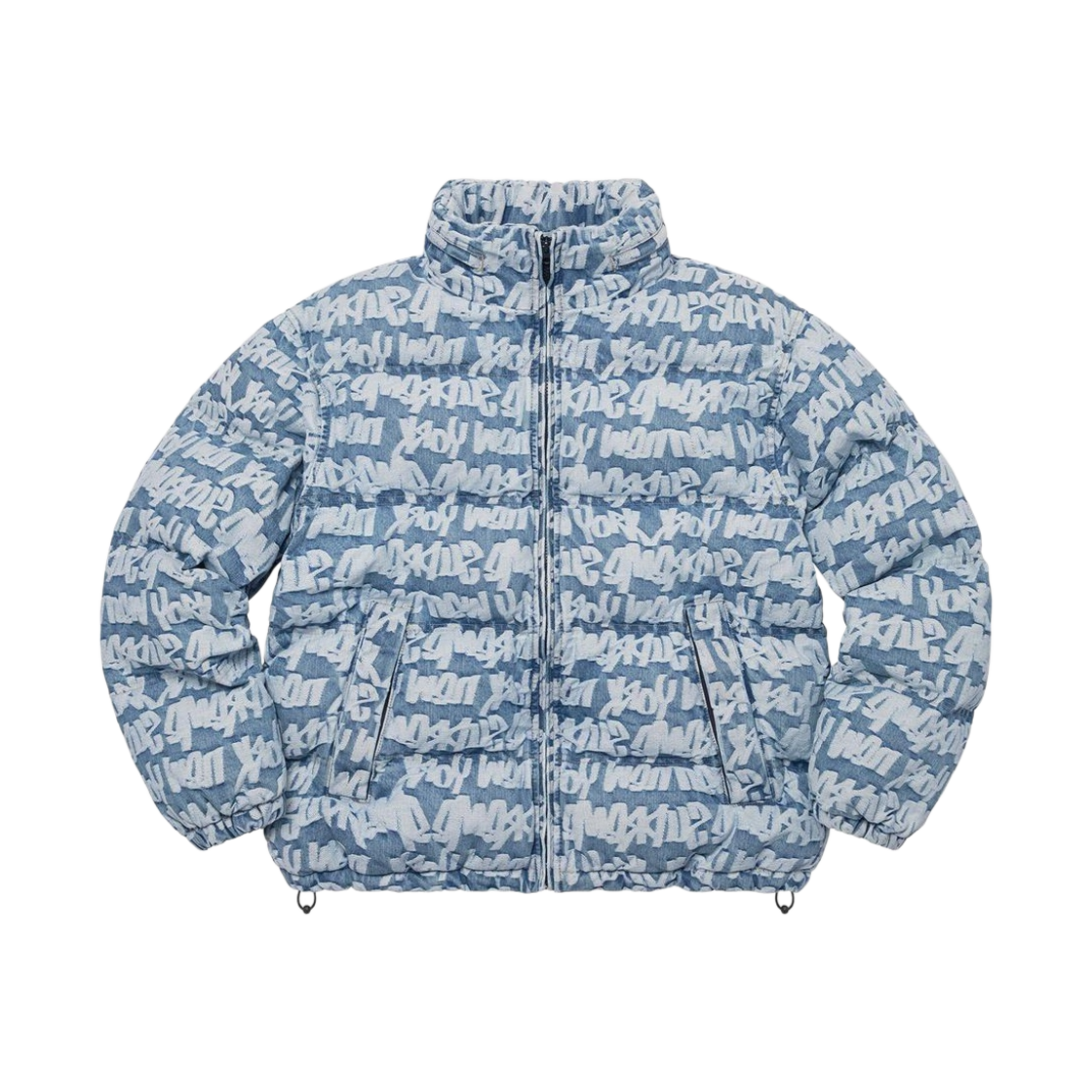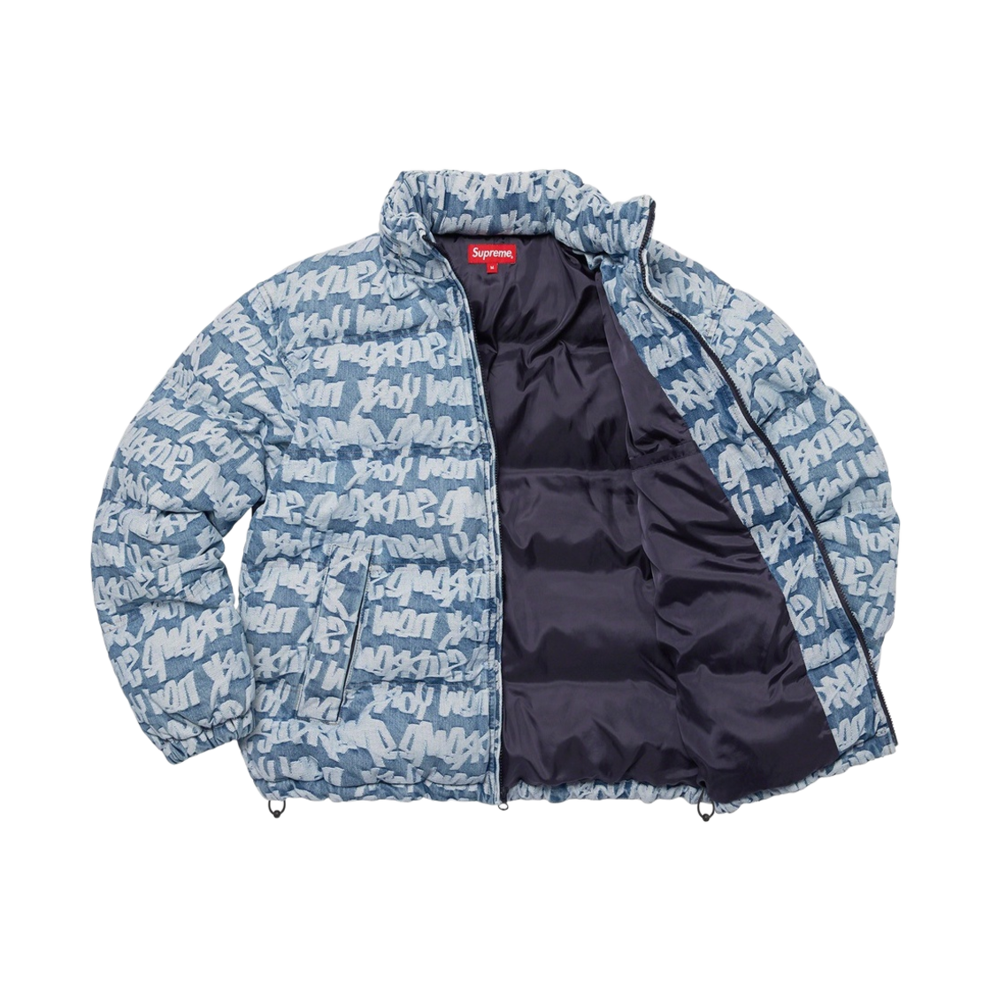 Supreme Fat Tip Jacquard Denim Puffer Jacket Blue - 22SS