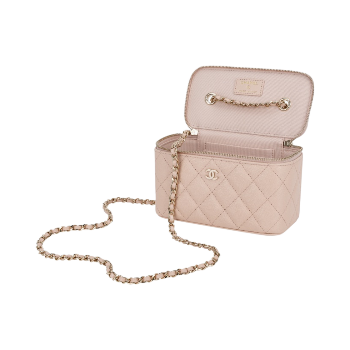 Chanel Small Vanity with Classic Chain Grained Calfskin & Gold Light Beige