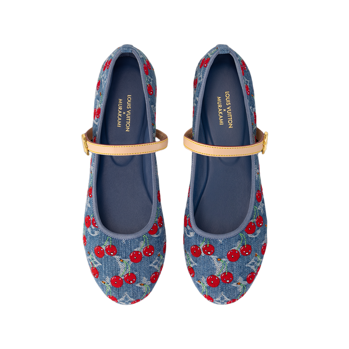 (W) Louis Vuitton x Murakami Takashi Romy Flat Ballerina Monogram Cherry Denim