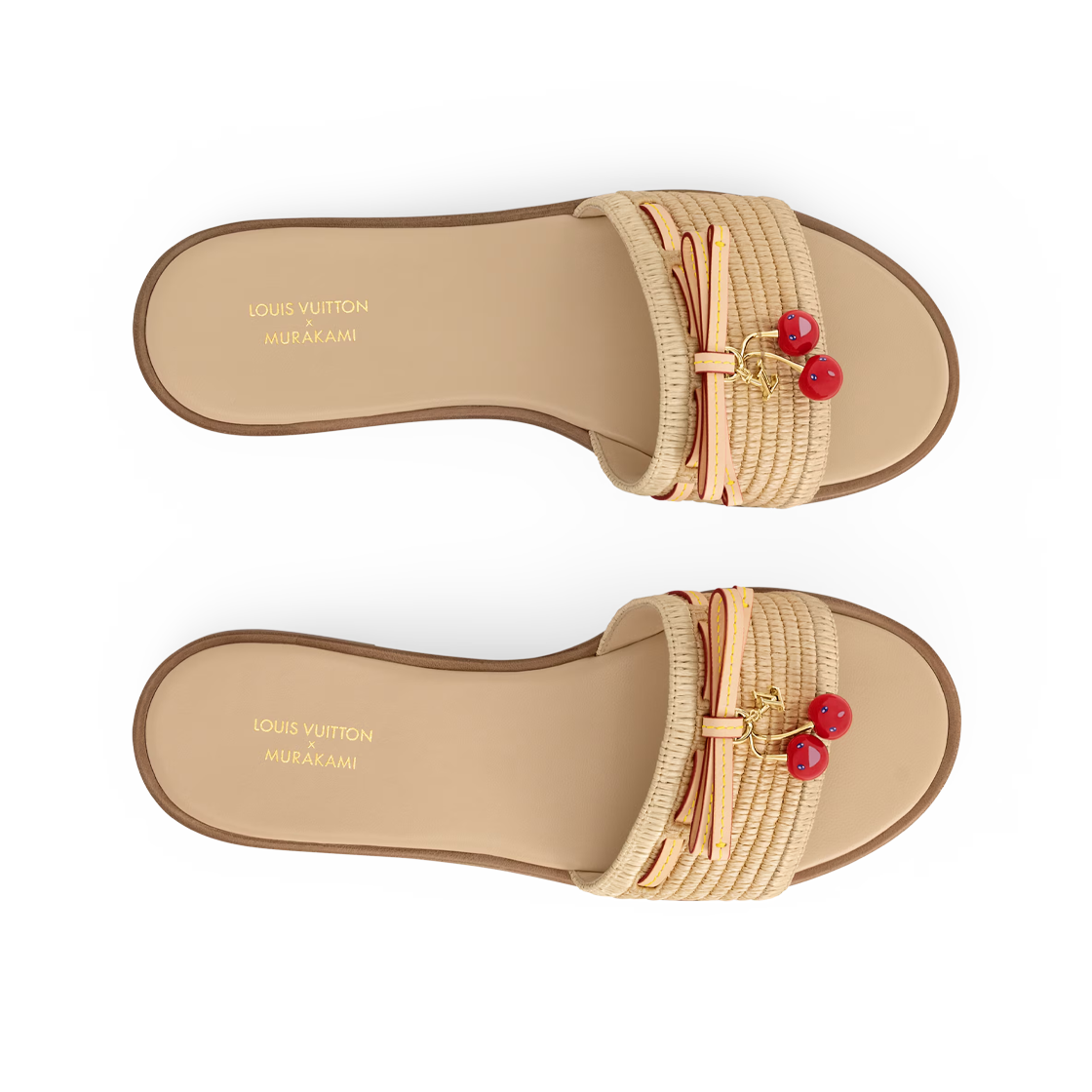 (W) Louis Vuitton x Murakami Takashi Lily Flat Mule Beige