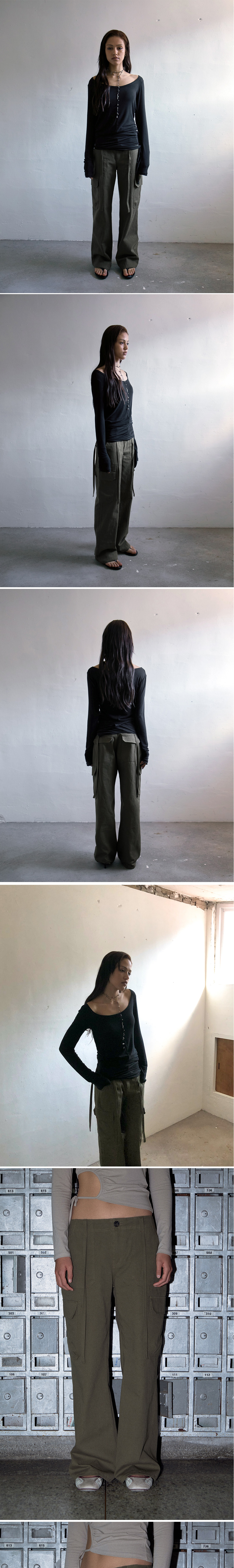 페요테 로우라이즈 스트링 카고 팬츠 카키