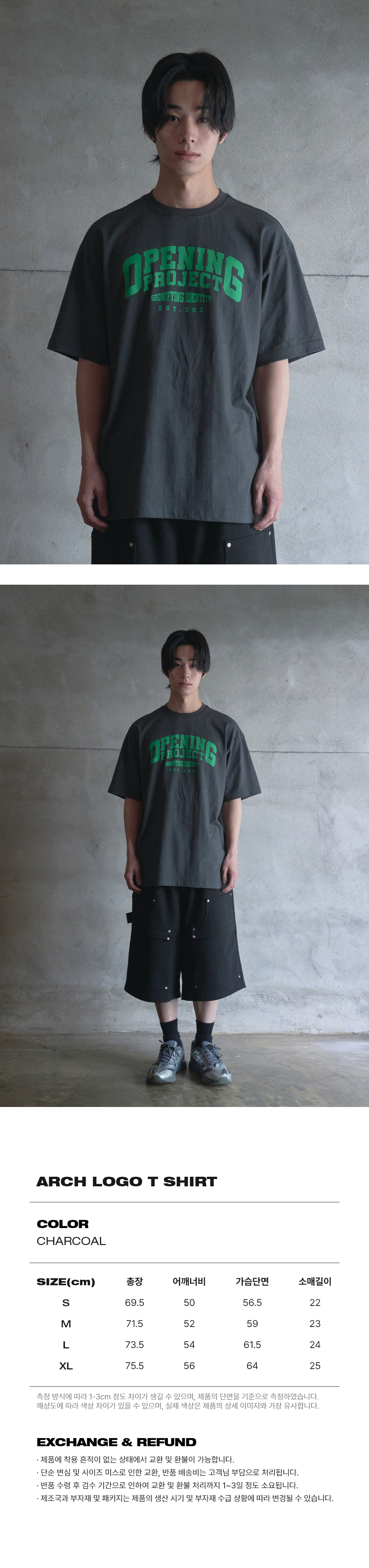 오프닝프로젝트 아치 로고 티셔츠 차콜