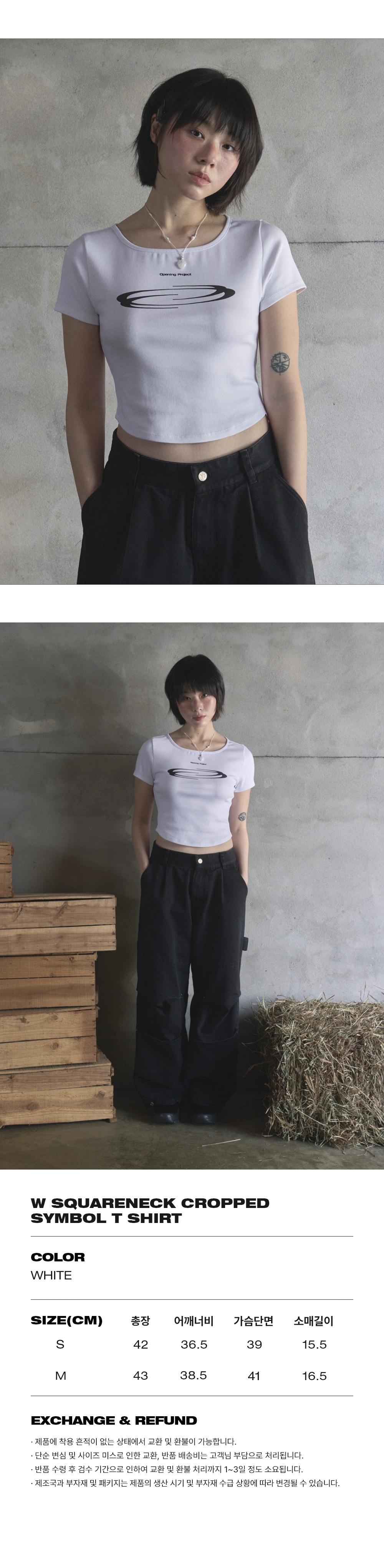오프닝프로젝트 W 스퀘어 크롭 심볼 티셔츠 화이트