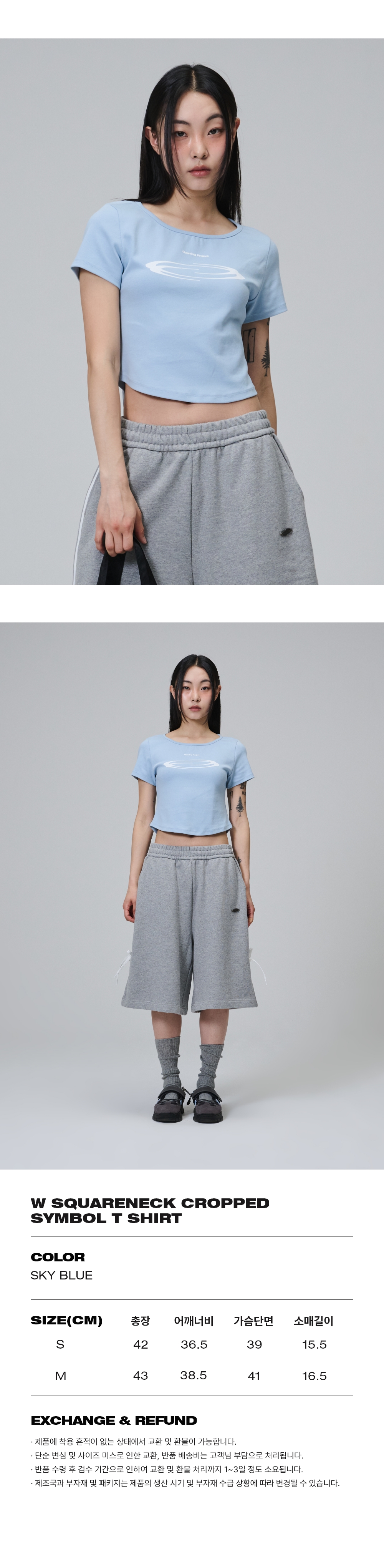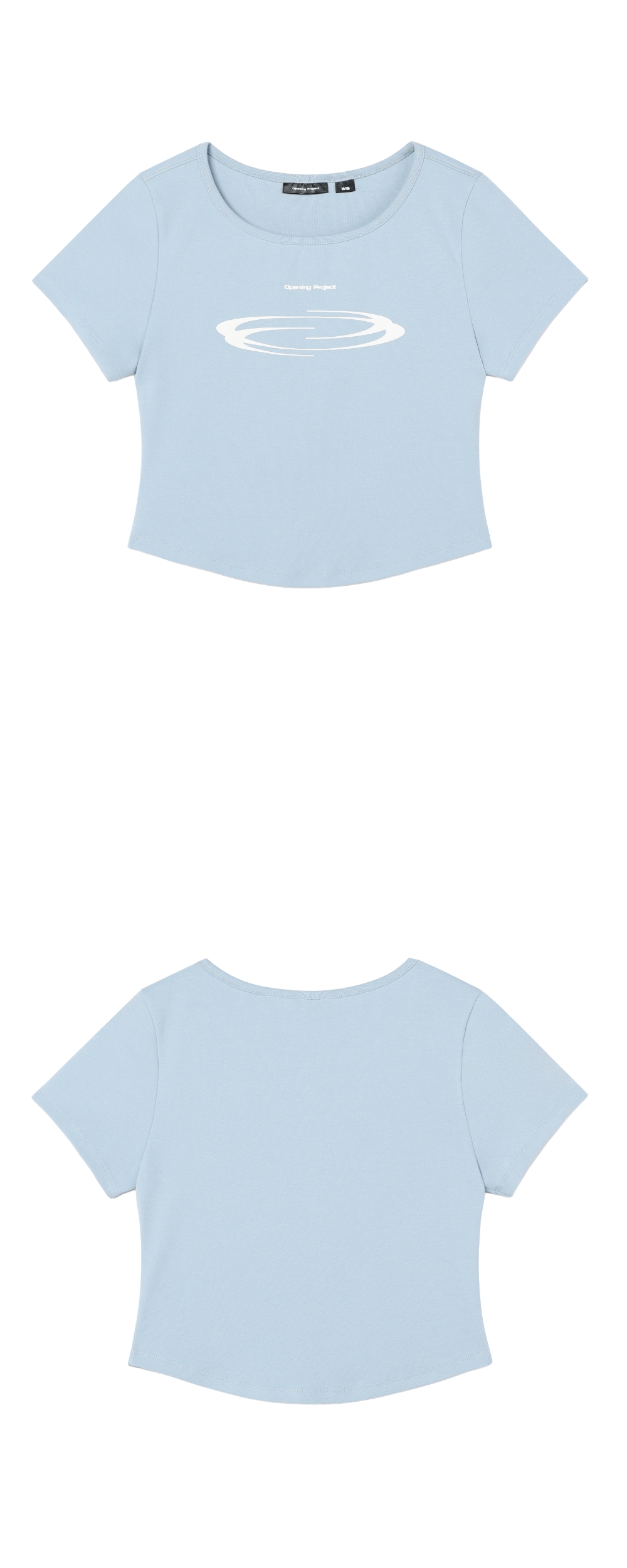 오프닝프로젝트 W 스퀘어 크롭 심볼 티셔츠 스카이 블루