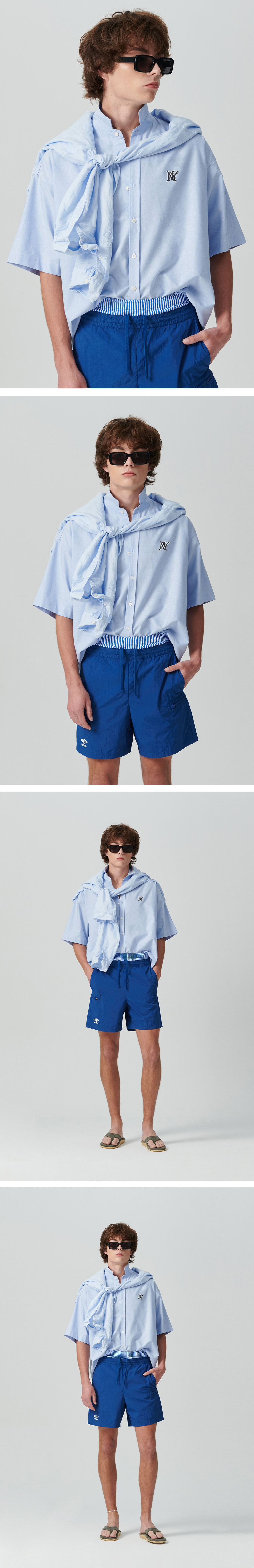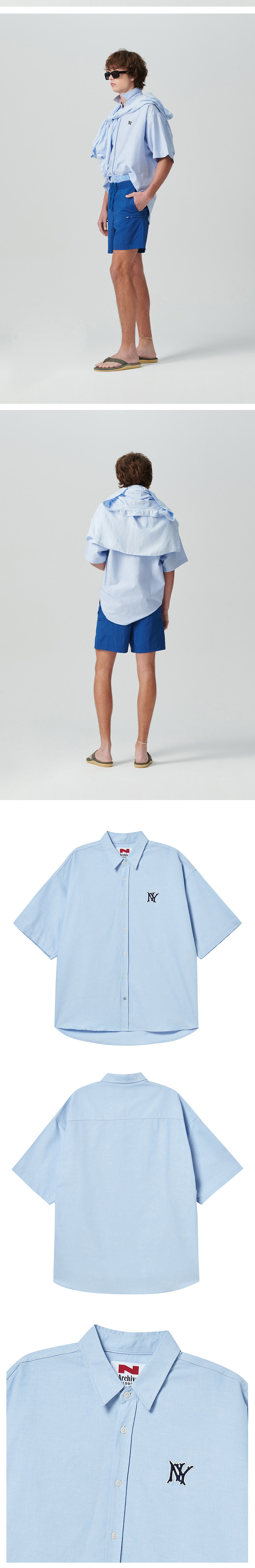 엔 아카이브 NY 로고 디테일 옥스포드 반팔 셔츠 블루