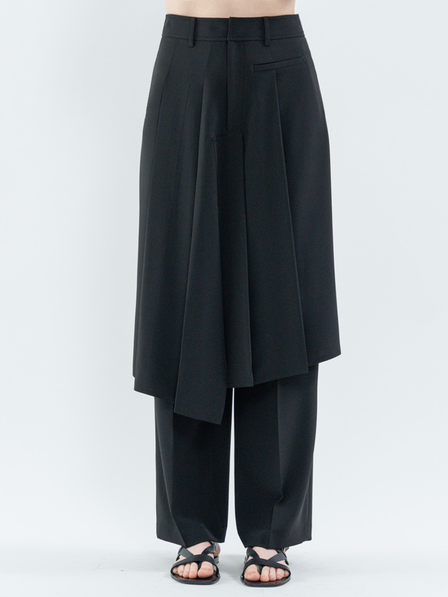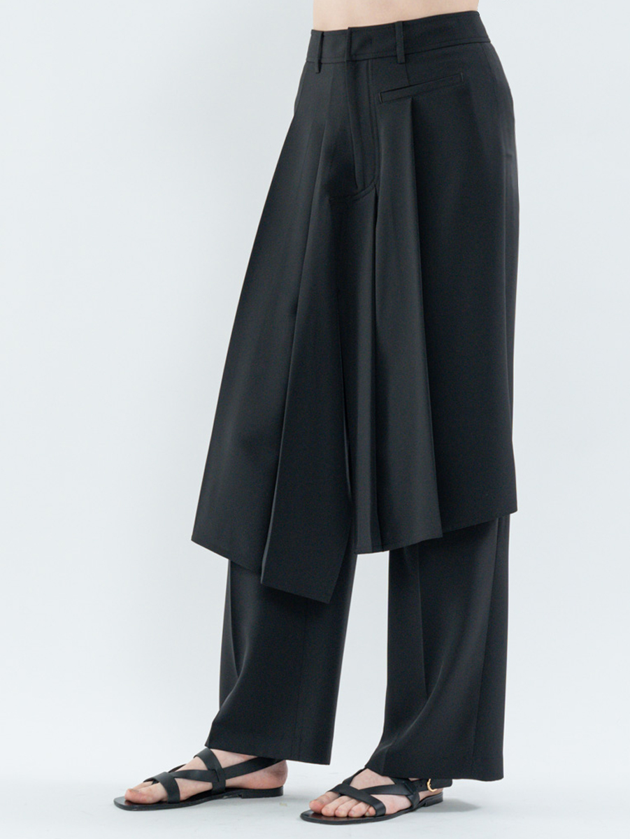 Details 비대칭 플리츠 스커트 패널을 더해 레이어드 효과를 연출한 팬츠로, 폴리우레탄 혼방 소재를 사용하여 활동성을 강화했습니다. - 릴랙스드 핏 - 프론트 히든 훅 및 지퍼 여밈 Fabric & Care - 폴리에스터 93%, 폴리우레탄 7% - 제품 형태 유지를 위하여 드라이크리닝을 권장합니다. Size and measurements - International sizing - 모델은 172cm이고 M 사이즈를 착용하였습니다.