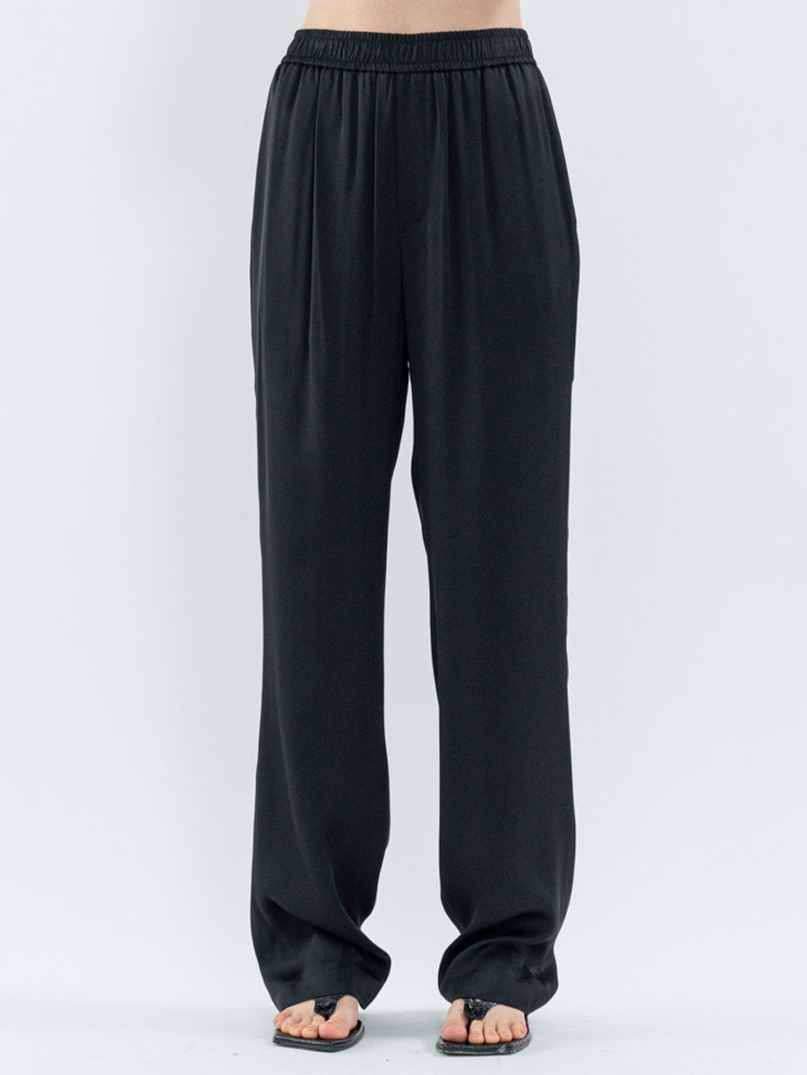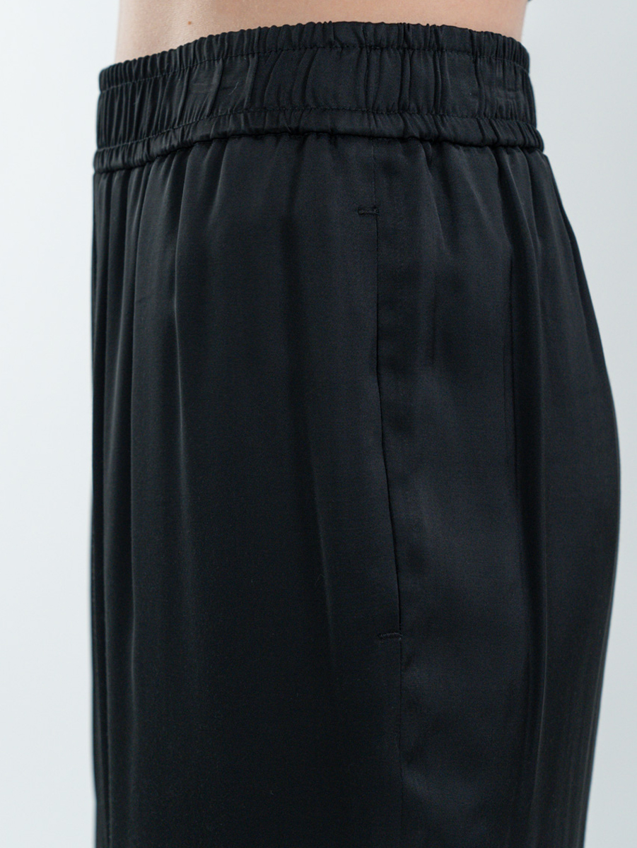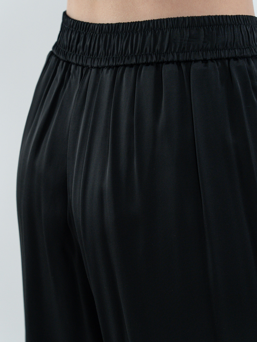Details 새틴 텍스처의 비스코스 원단으로 제작되어 가볍고 부드러운 착용감을 제공하는 팬츠로, 스트레이트 핏과 루즈한 롱 기장이 특징입니다. - 스트레이트 / 루즈 핏 - 신축성 있는 허리 밴드 - 사이드 심 포켓 Fabric & Care - 폴리우레탄 52%, 비스코스 43%, 스판덱스 5% - 제품 형태 유지를 위하여 드라이크리닝을 권장합니다. Size and measurements - International sizing - 모델은 172cm이고 M 사이즈를 착용하였습니다.