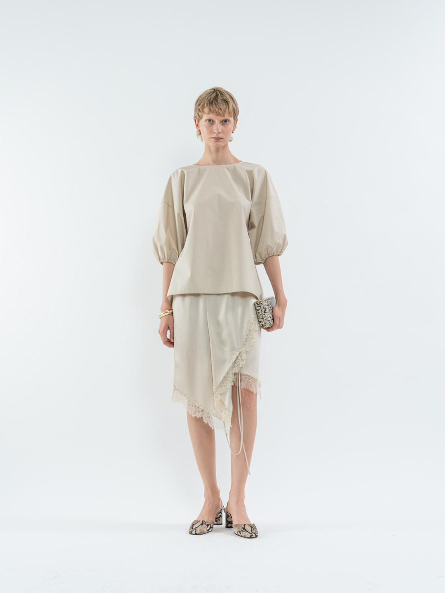 Details 드롭 숄더와 풍성한 벌룬 소매가 특징인 이 릴랙스드 핏 블라우스는 면으로 제작되어 탁월한 편안함을 제공합니다. 또한, 목 뒤에 타이 디테일이 있어 핏 조절이 가능하여 활동성을 더합니다. - 루즈 핏 - 조절 가능한 핏을 위한 목 뒤 타이 디테일 - 부드럽고 통기성이 뛰어난 면 소재를 사용하여 고급스러운 착용감 Fabric & Care - 코튼 100% - 제품 형태 유지를 위하여 드라이크리닝을 권장합니다. Size and measurements - International sizing - 모델은 171cm이고 M 사이즈를 착용하였습니다.