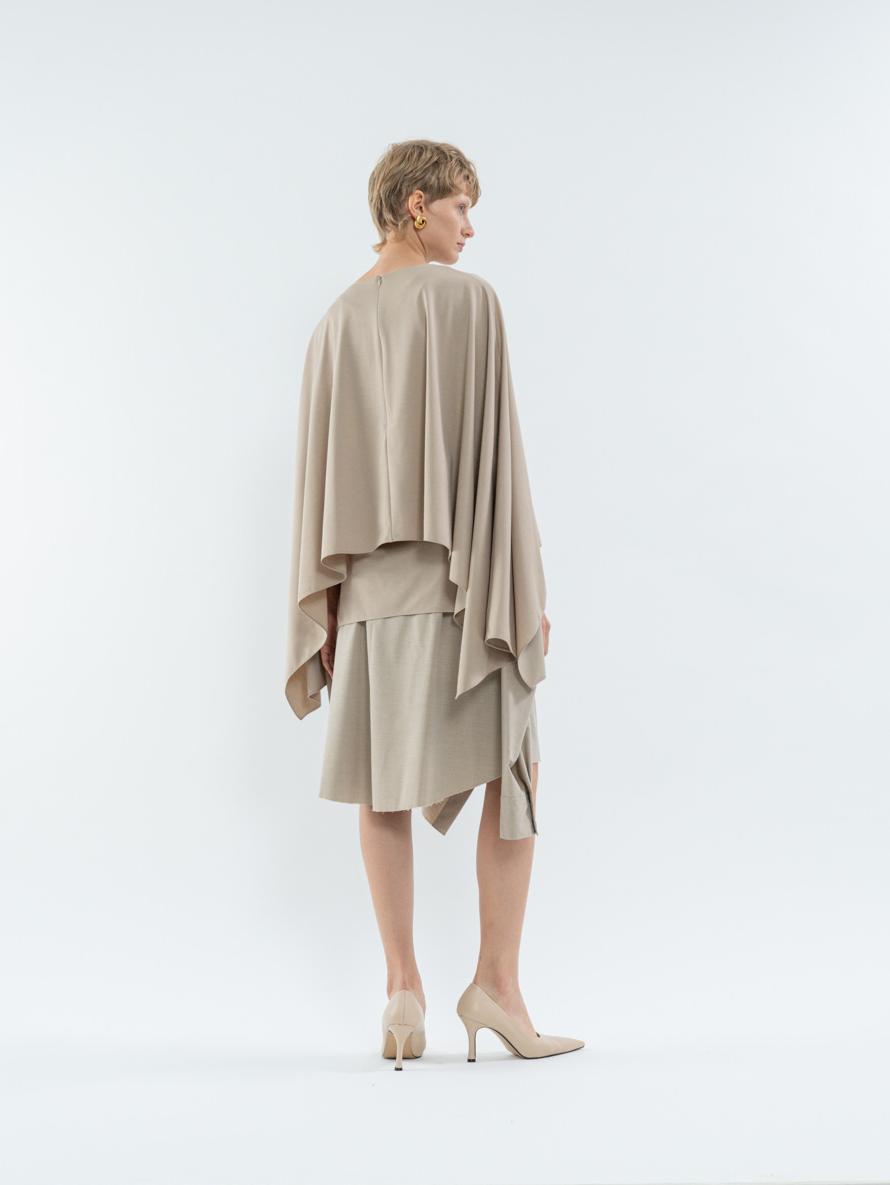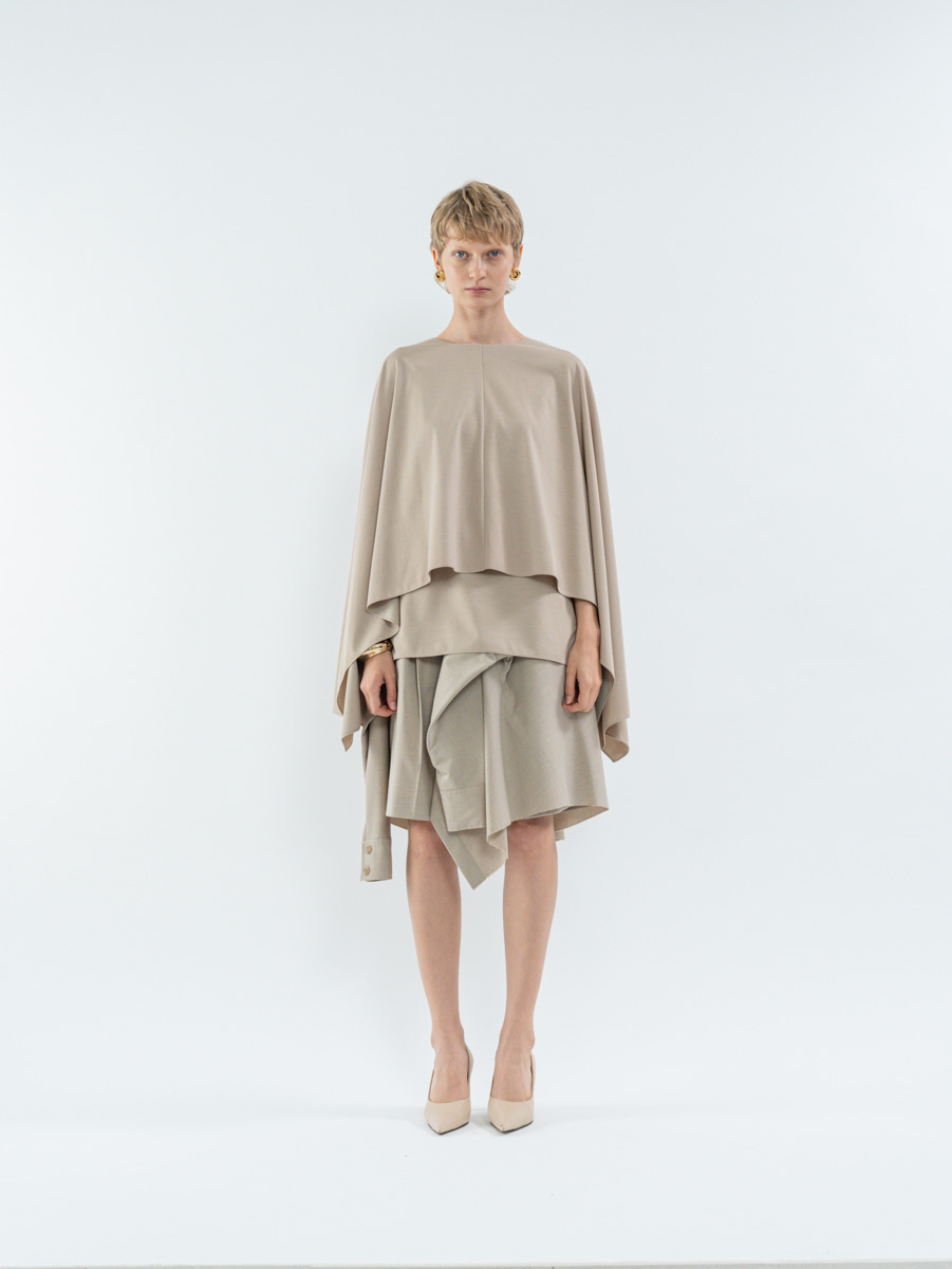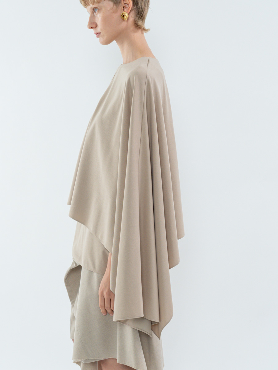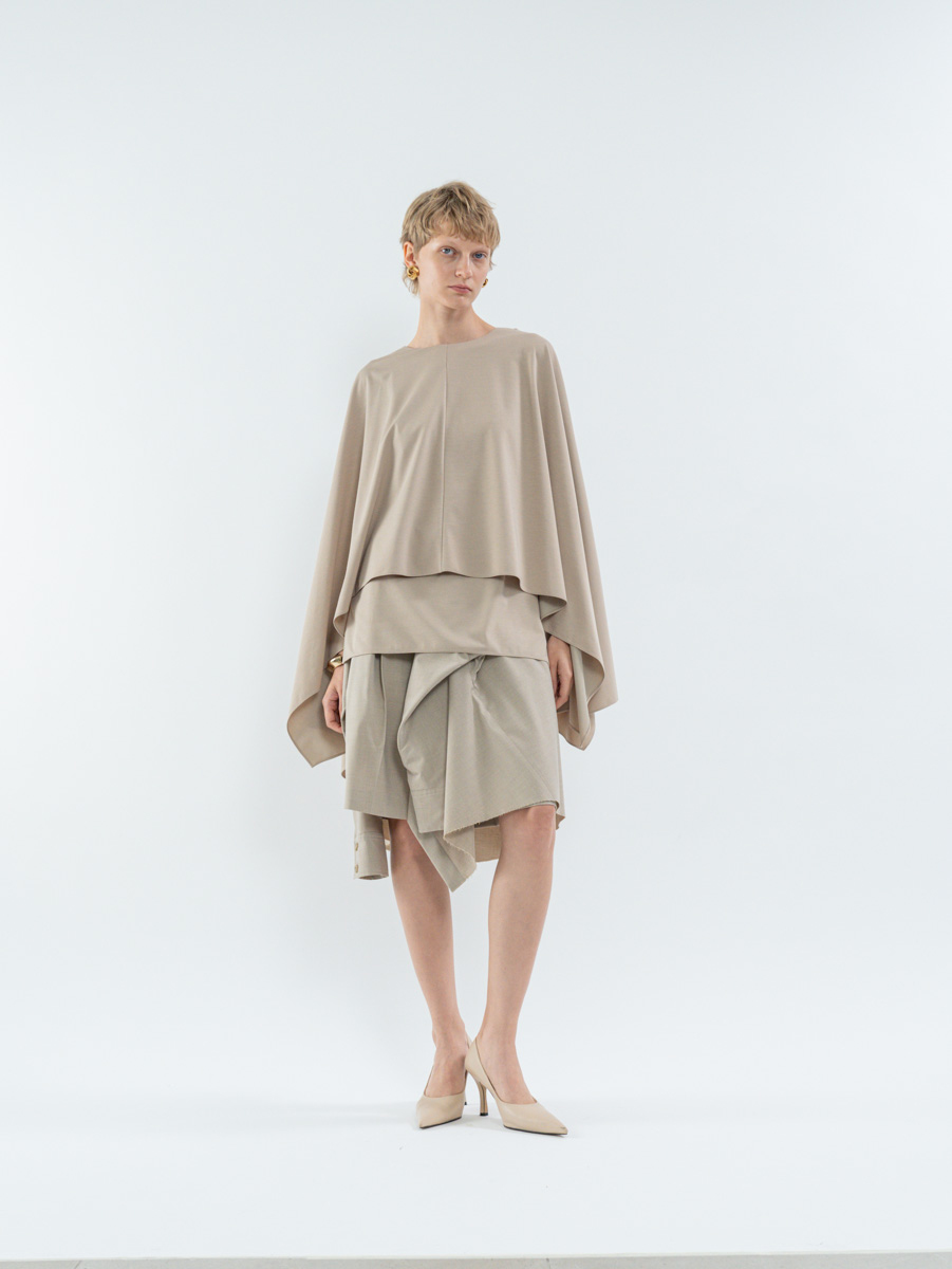 Details 릴랙스드 핏 민소매 탑 위에 직사각형의 판초처럼 떨어지는 케이프 탑이 레이어드된 디자인으로, 일반적인 케이프 디자인과 달리 팔의 자유로운 움직임이 가능합니다. 비스코스와 나일론 혼방 원단으로 제작되어 시원한 느낌을 주며, 유연하고 자연스럽게 흐르면서 우아한 실루엣을 만들어냅니다. - 릴랙스드 핏 - 뒤에서 콘솔지퍼로 여밈 Fabric & Care - 비스코스 33%, 나이론 59%, 스판덱스 8% - 제품 형태 유지를 위하여 드라이크리닝을 권장합니다. Size and measurements - International sizing - 모델은 171cm이고 M 사이즈를 착용하였습니다.