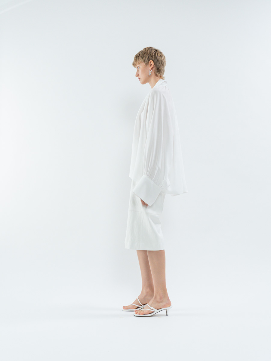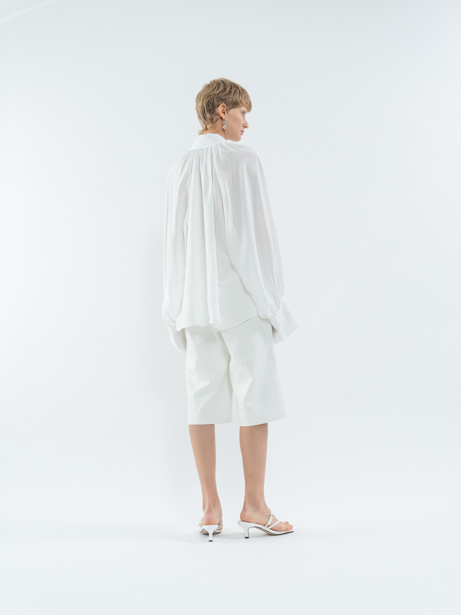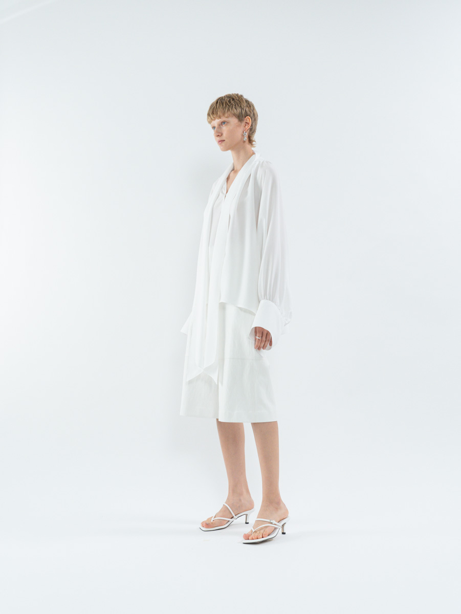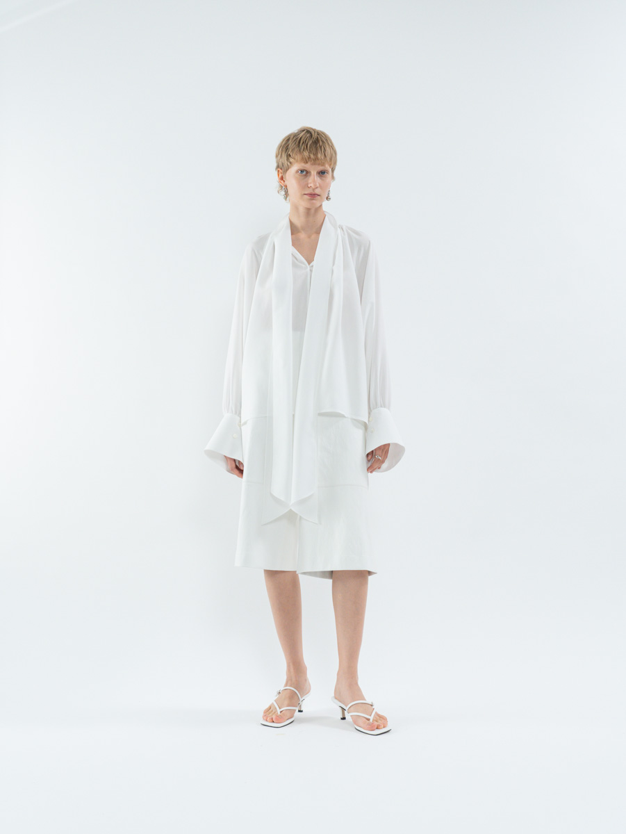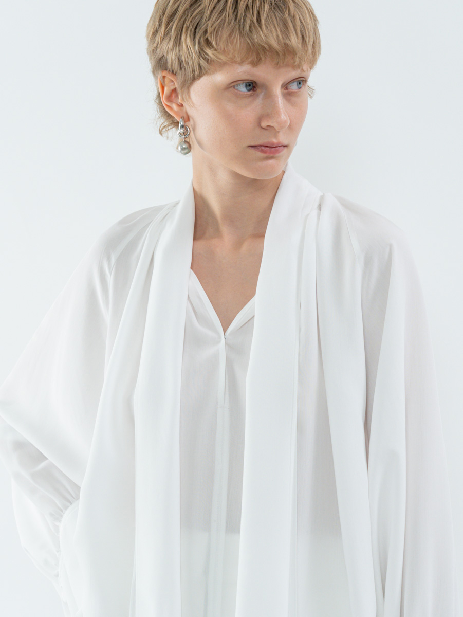 Details 네크라인과 커프스에 풍성한 주름 디테일로 우아함을 더하며, 넓은 스카프를 통해 다양한 스타일을 연출할 수 있습니다. 또한, 커프스는 자개 단추 디테일로 손목에 맞게 조절할 수 있습니다. - 루즈 핏 - 깊은 V넥과 하나의 스냅 단추 - 커프스에 자개 단추 여밈 - 부드럽고 통기성 좋은 원단 Fabric & Care - 레이온 58%, 비스코스 42% - 제품 형태 유지를 위하여 드라이크리닝을 권장합니다. Size and measurements - International sizing - 모델은 171cm이고 M 사이즈를 착용하였습니다.