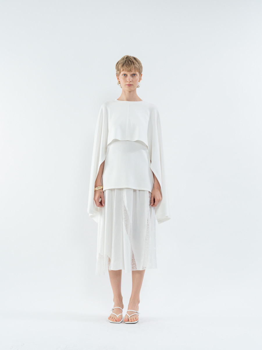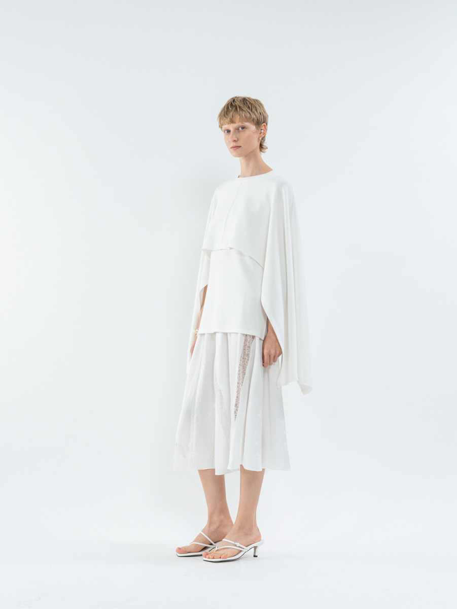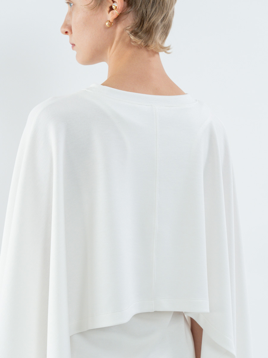 Details 릴랙스드 핏 탱크탑 위에 직사각형의 판초처럼 떨어지는 케이프 탑이 레이어드된 디자인으로, 일반적인 케이프 디자인과 달리 팔의 자유로운 움직임이 가능합니다. 비스코스와 폴리에스터 혼방 원단으로 제작되어 가볍고 유연하며 자연스럽게 흐르는 드레이프가 우아한 실루엣을 만들어냅니다. - 릴랙스드 핏 - 립을 사용한 U넥라인으로 캐주얼한 무드 추가 Fabric & Care - 비스코스 47%, 폴리에스터 47%, 스판덱스 6% - 제품 형태 유지를 위하여 드라이크리닝을 권장합니다. Size and measurements - International sizing - 모델은 171cm이고 M 사이즈를 착용하였습니다.
