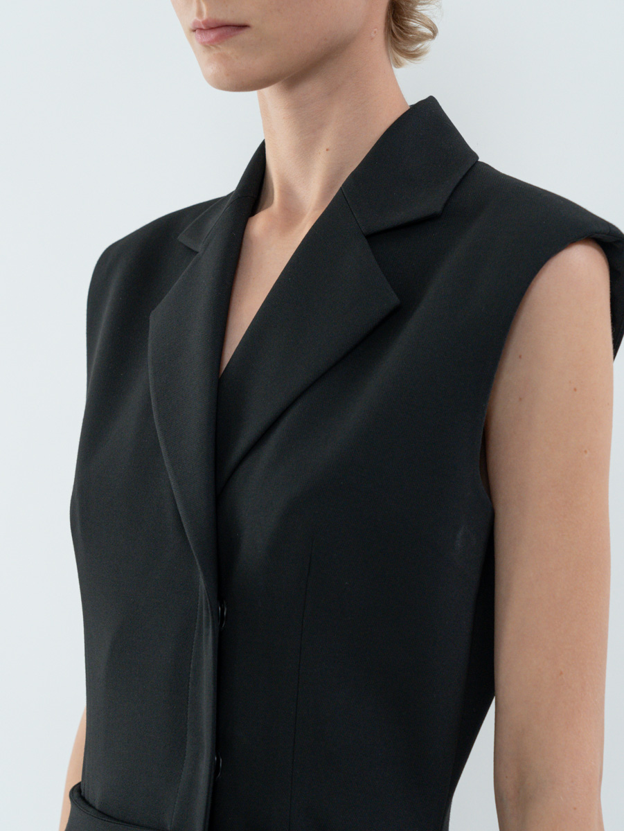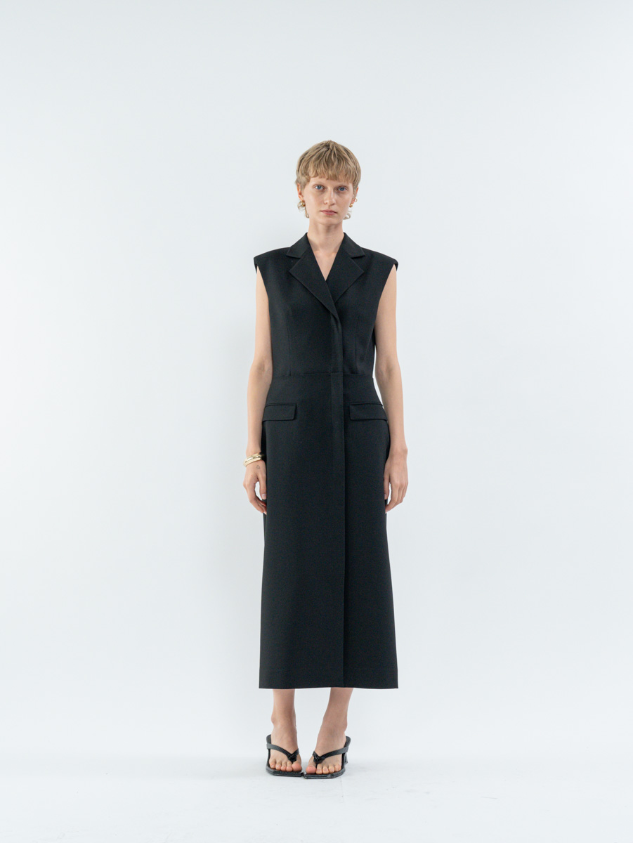 Details 노치드 라펠 베스트와 긴 스트레이트 실루엣 스커트로 구성된 레이어드 디자인으로, 뒷면의 벤트 디테일이 활동성을 더합니다. - 슬림 핏 - 스냅 단추 여밈으로 편안한 착용감과 깔끔한 분위기 연출 - 전체 안감으로 큐프로 원단 사용 Fabric & Care - 텐셀 64%, 비스코스 24%, 울 7%, 스판덱스 5% (안감: 큐프로 100%) - 제품 형태 유지를 위하여 드라이크리닝을 권장합니다. Size and measurements - International sizing