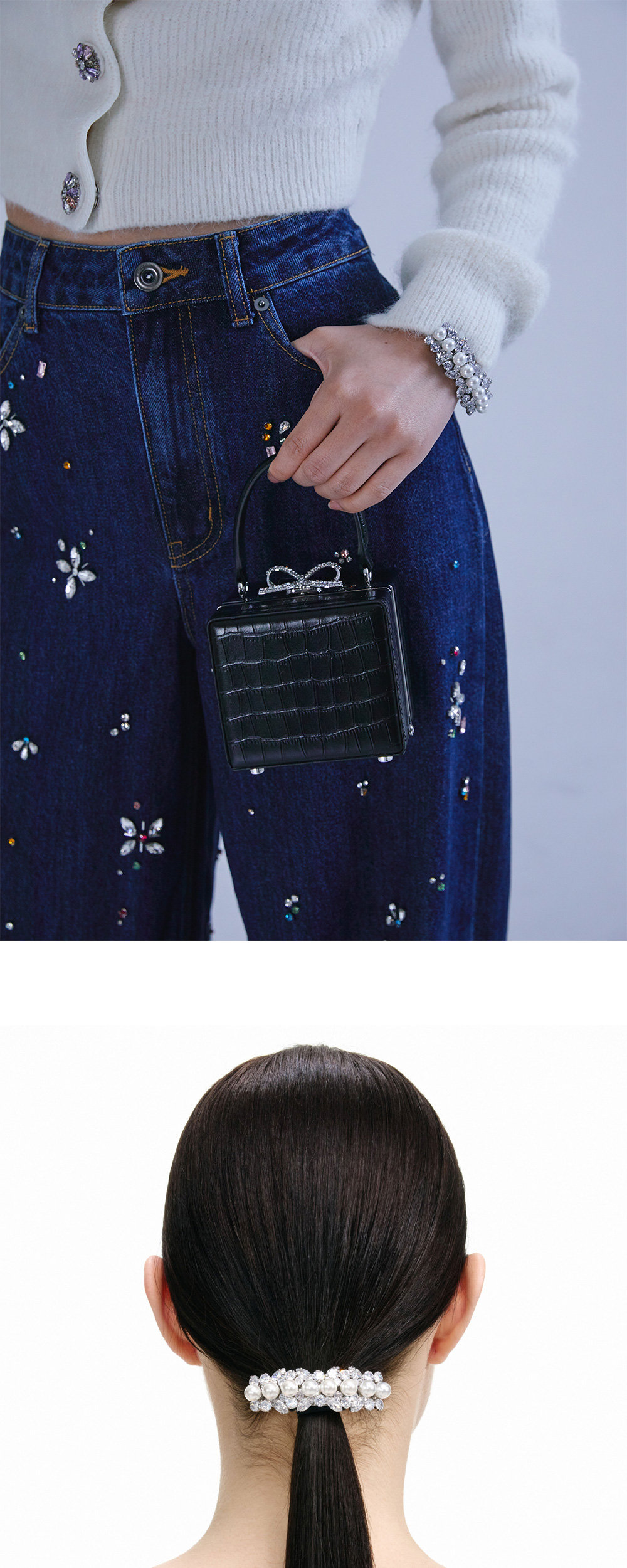 진주 장식이 매력적인 셀프 포트레이트 우먼 멀티 크리스탈 헤어 커프 실버입니다. - 실버 도금 황동 - 크리스탈 & 인조 진주 장식 - 머리끈 부착
