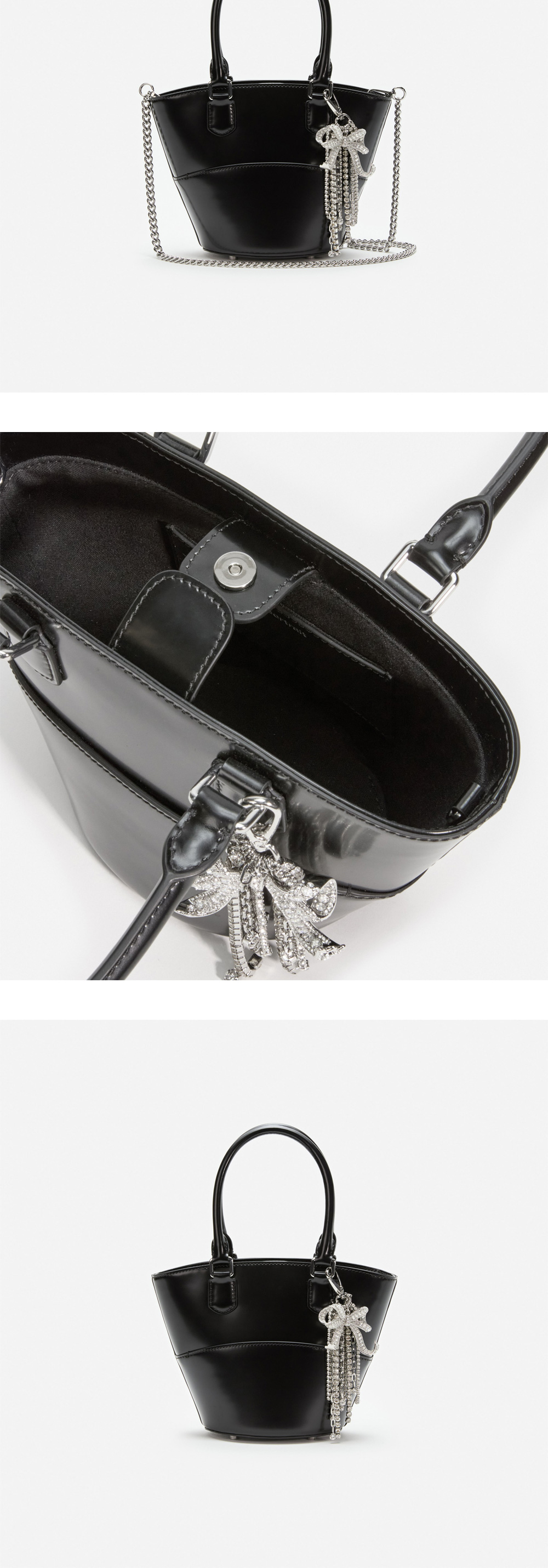 디아망테 장식이 돋보이는 셀프 포트레이트 우먼 레더 참 토트 백 블랙입니다. - 탈부착 가능한 키링 - 겉감 소가죽