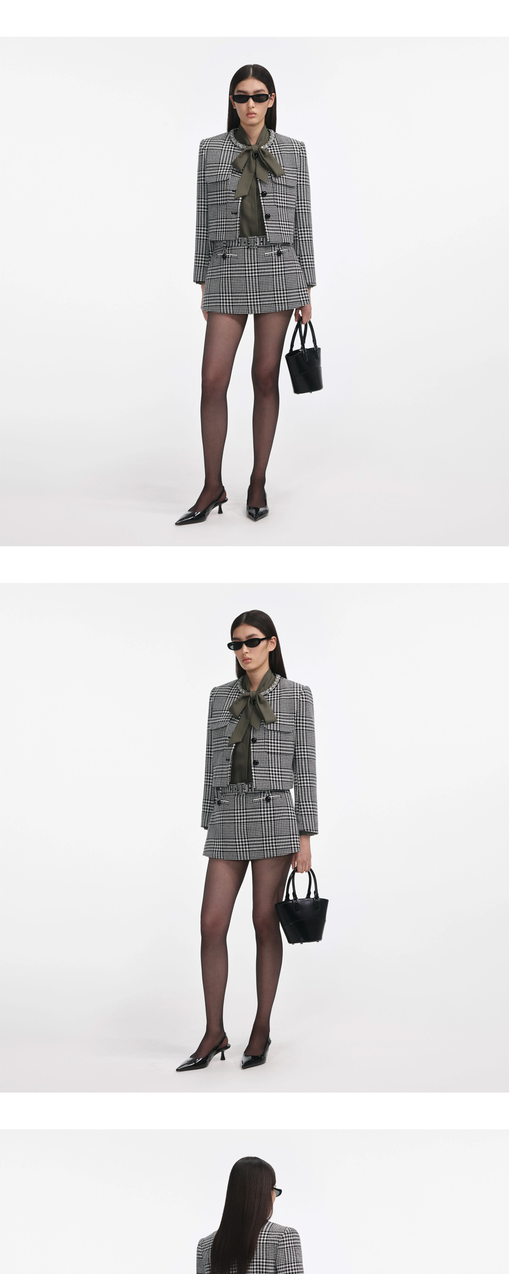 Self Portrait Women Houndstooth Crystal Trim Jacket Black And White - 25FW