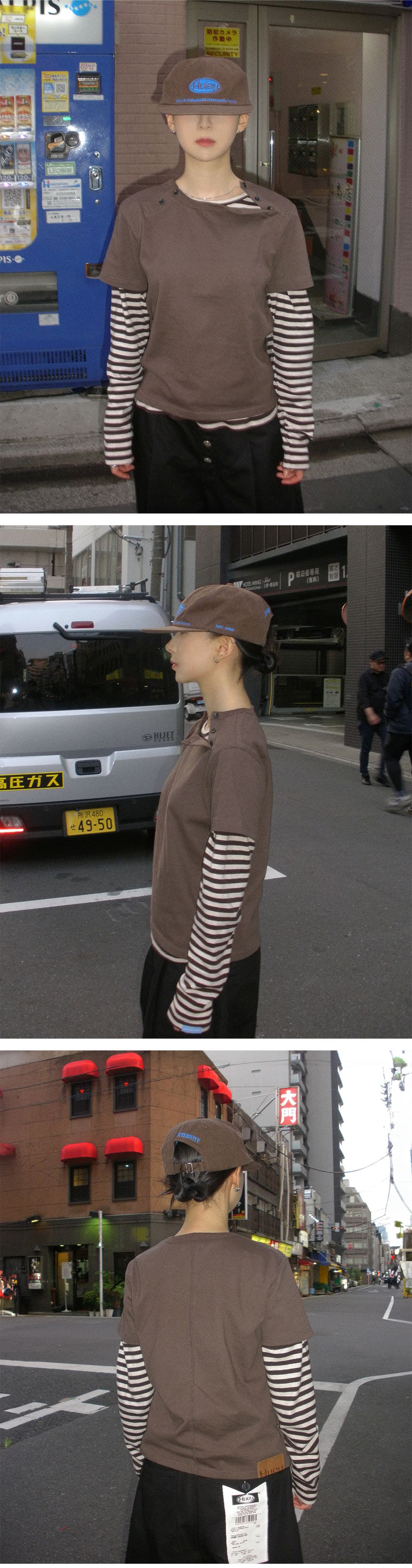휴이 더블 사이드 버튼 헨리넥 브라운