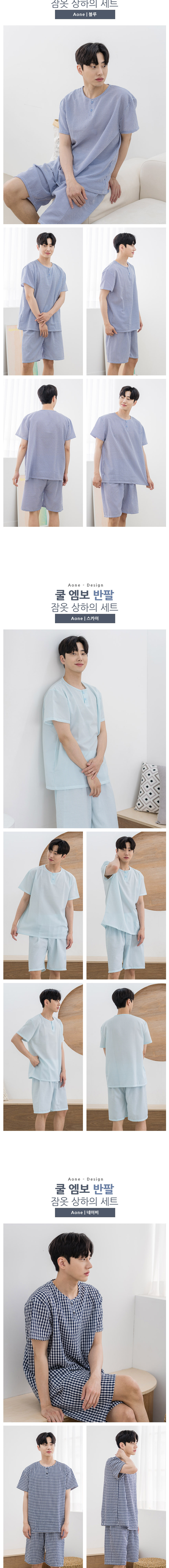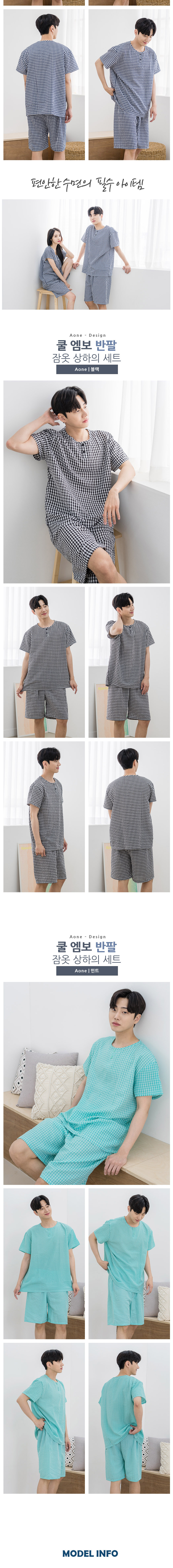 에이원 쿨 엠보 반팔 잠옷 세트 민트