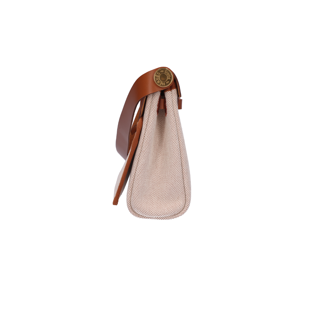[S등급] Hermes Vintage Herbag 20 Bag Canvas Ecru Beige Fauve Gold W Engraved