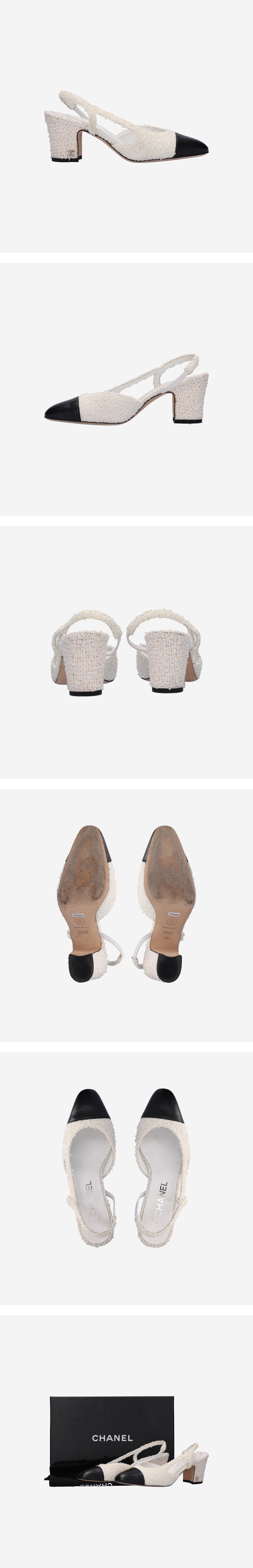 Chanel Slingbacks Leather Tweed Black White 35.5