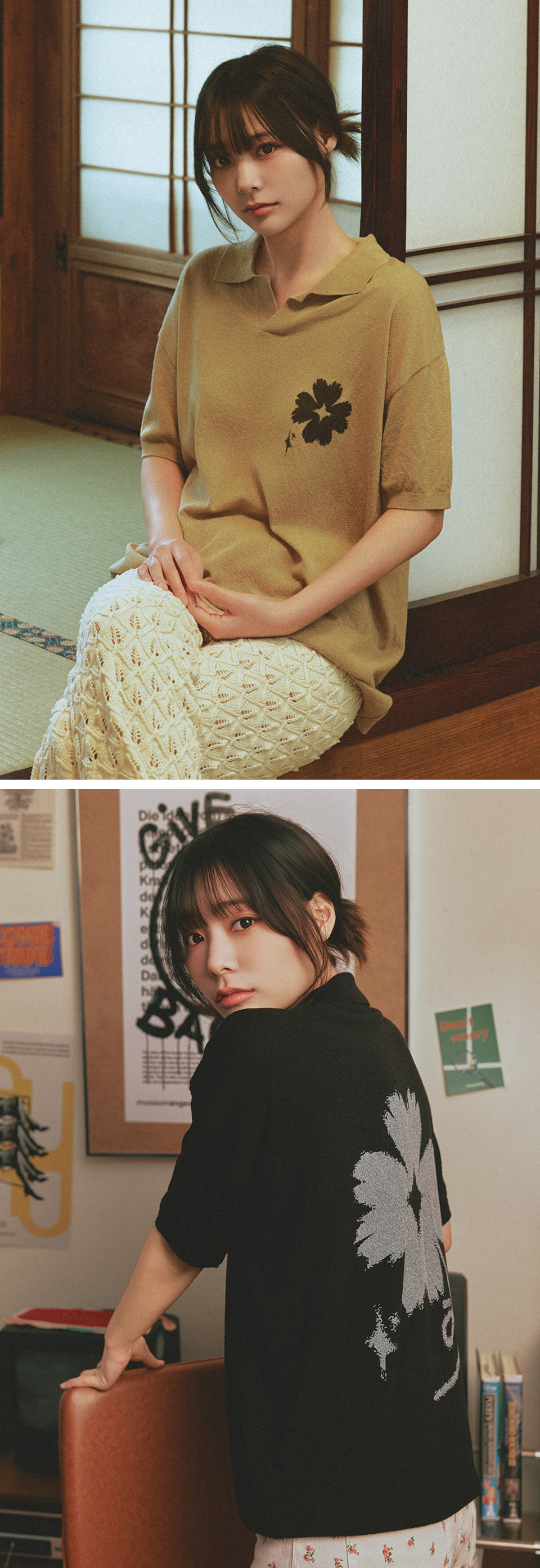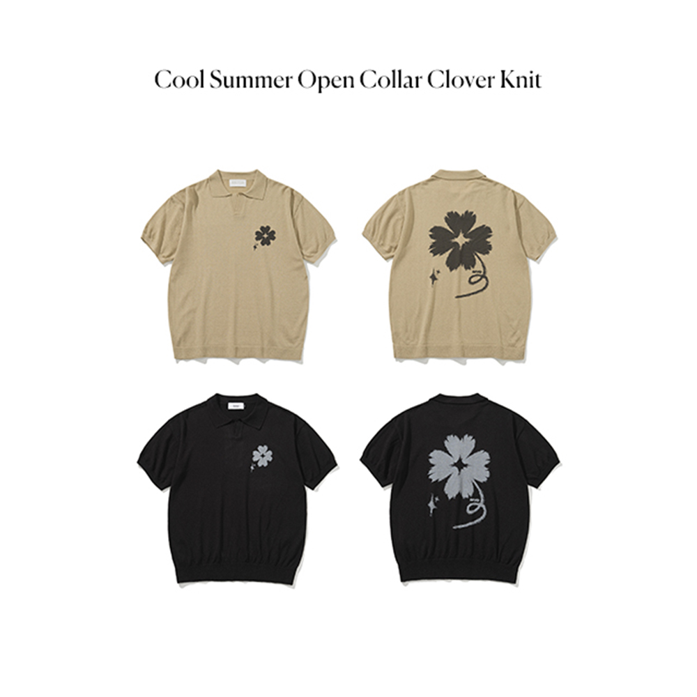 흡한속건 기능의 원단으로 제작되어 몸에 달라붙지 않아 한여름에도 쾌적하게 착용 가능한 반팔 니트입니다. 시연의 사인에 담겨있는 네잎클로버를 리디자인한 그래픽 나염으로 유니크한 무드를 더했습니다. 드롭된 어깨 라인으로 자연스러운 실루엣을 연출해 주며 베이직한 오픈카라 디자인이지만 전후면의 그래픽으로 단품 착용만으로도 포인트가 되어줍니다.