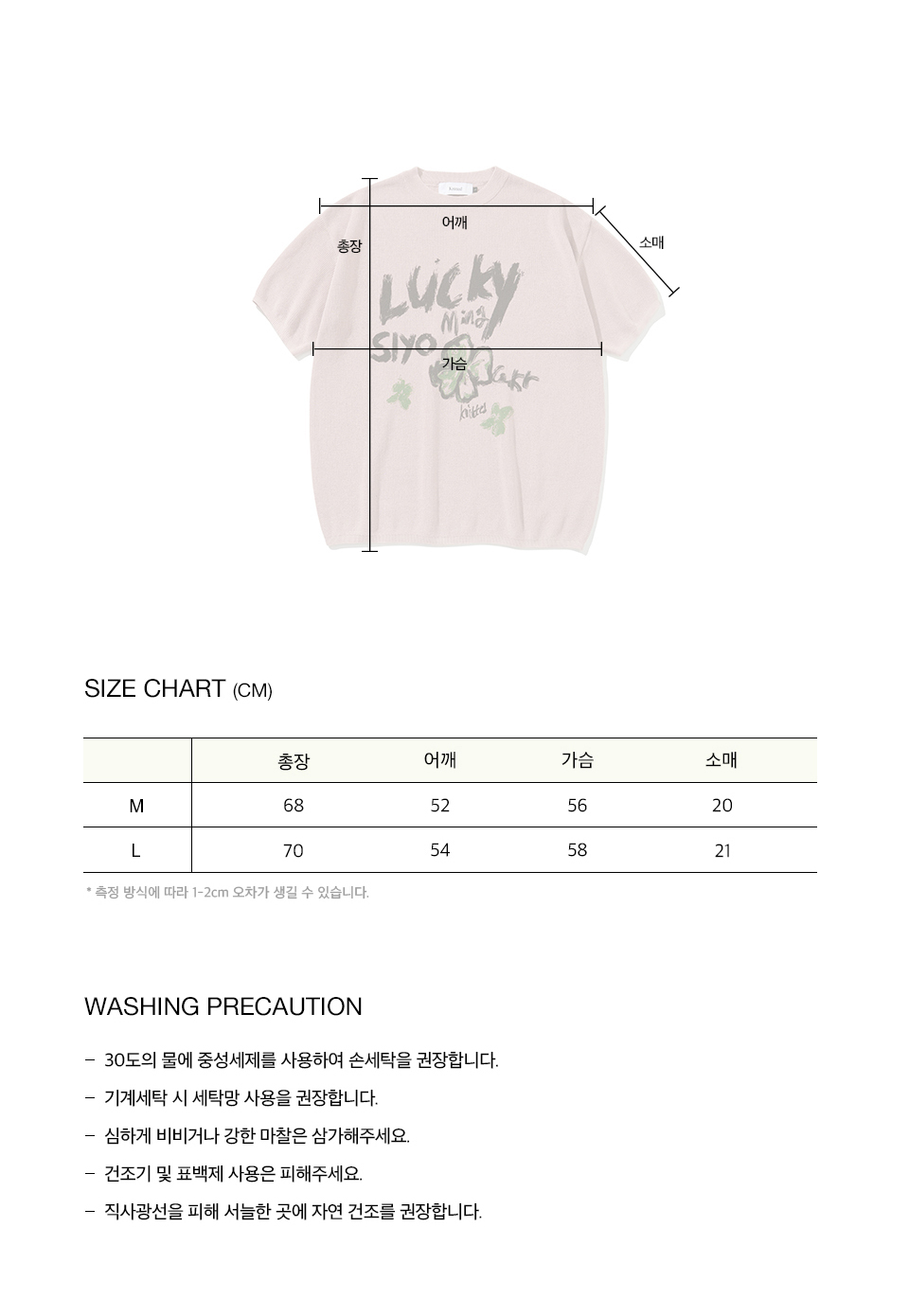 측정 방법에 따라 사이즈에 일부 오차가 있을 수 있습니다.