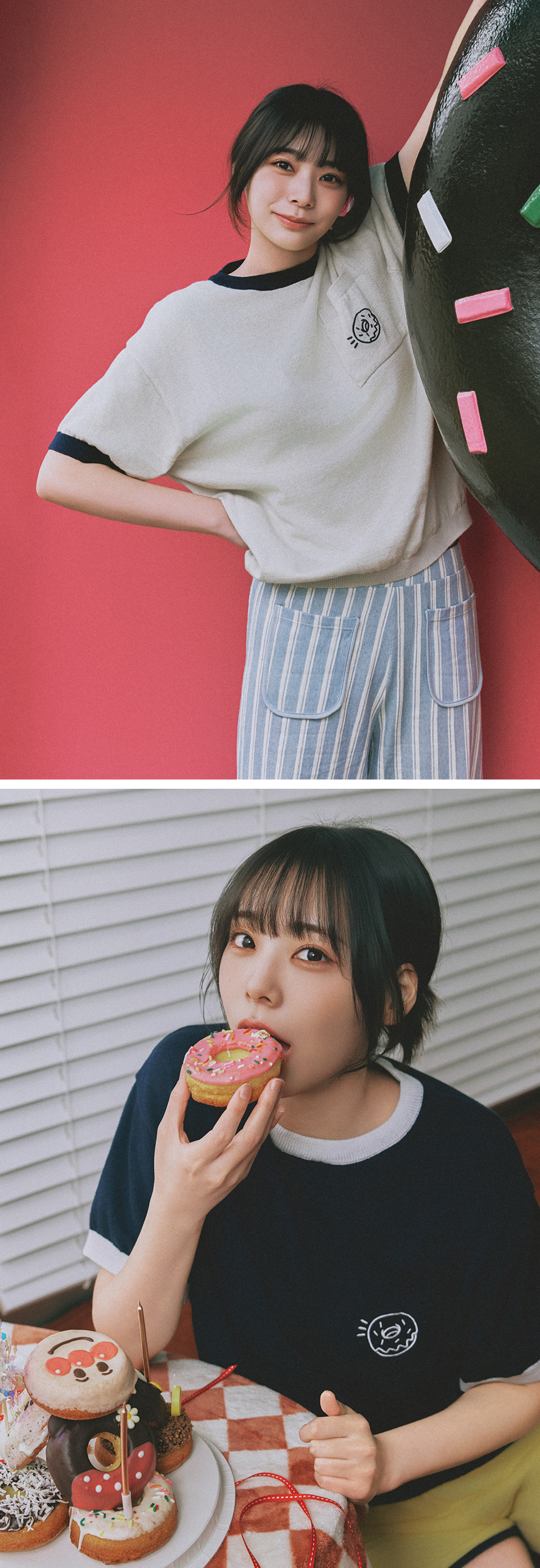 코튼 100% 원단으로 제작되어 부드러운 터치감으로 예민한 피부에도 자극 없이 착용 가능한 반팔 니트입니다. 시연이 사랑하는 도넛을 자수 포인트로 담은 포켓과 넥 라인과 소매 끝단의 배색으로 유니크한 무드를 더했습니다. 가벼운 무게감과 여유 있는 가슴 사이즈로 착용 시 편안하며 차분한 색상으로 부담 없이 스타일링에 활용하기 좋은 니트웨어입니다.