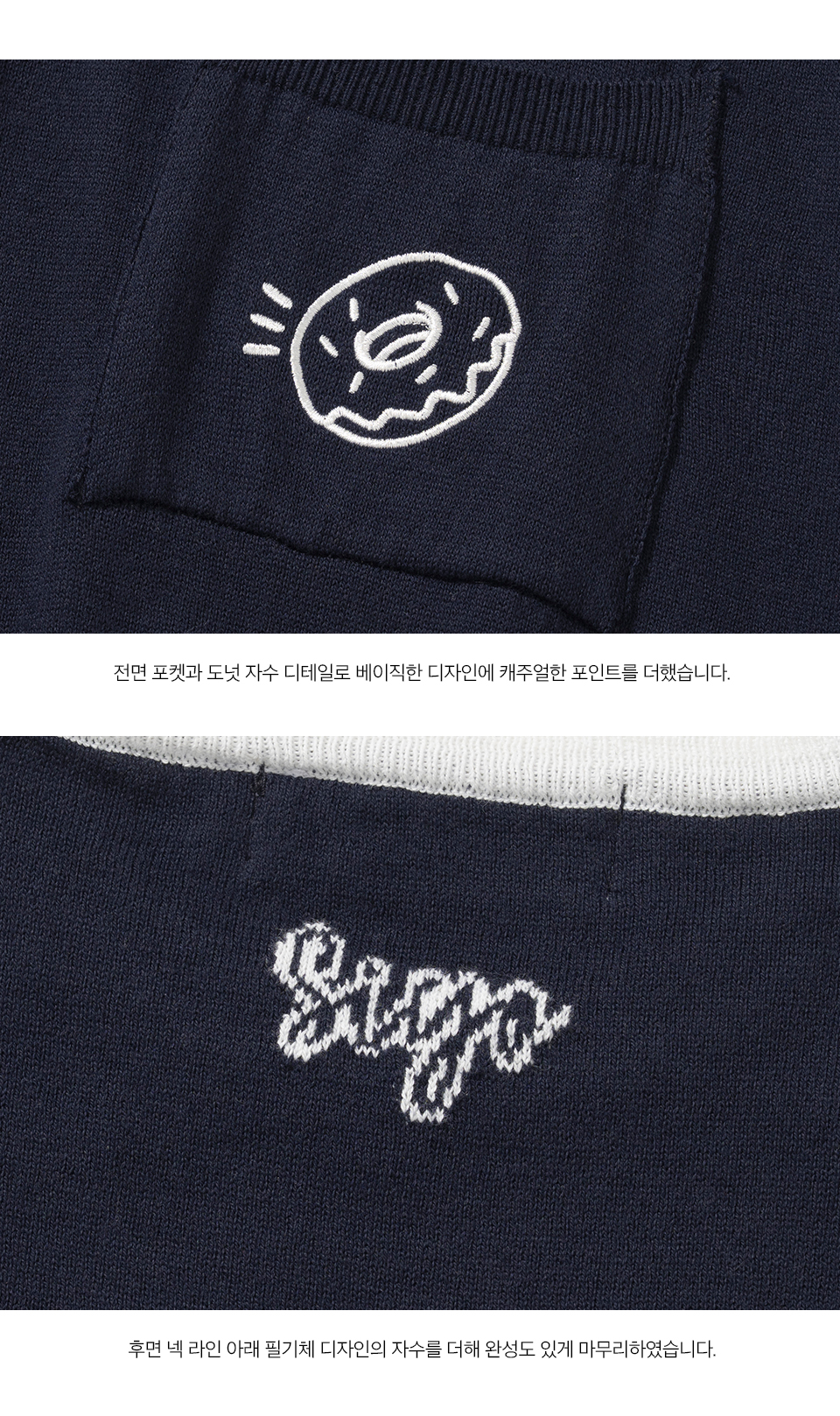 니티드 X QWER시연 도넛 포켓 라운드 니트 네이비