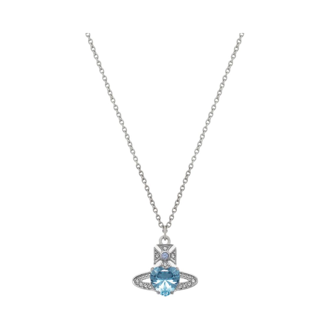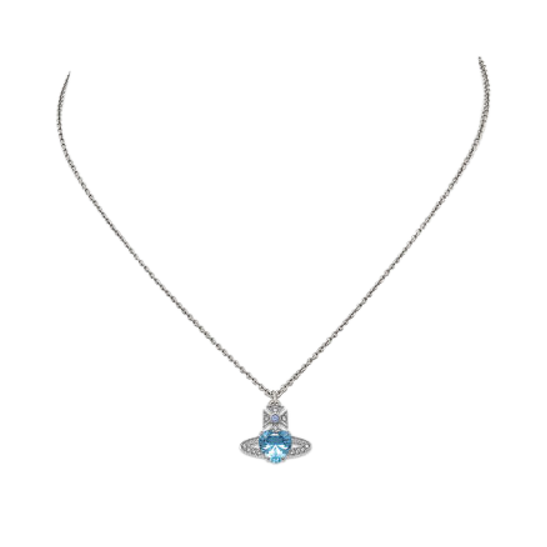 Vivienne Westwood Ariella Pendant Necklace Platinum Aquamarine CZ Light Sapphire Black