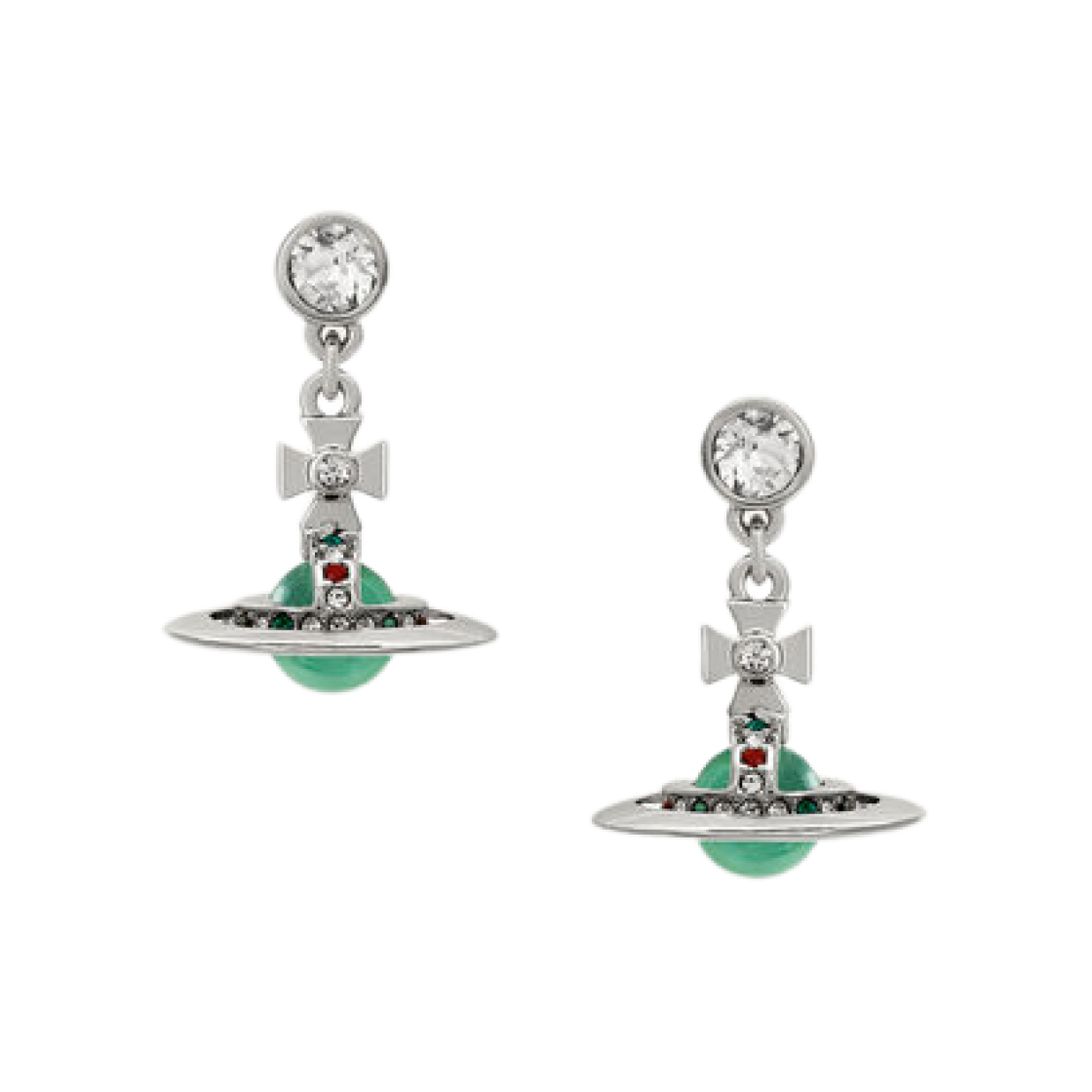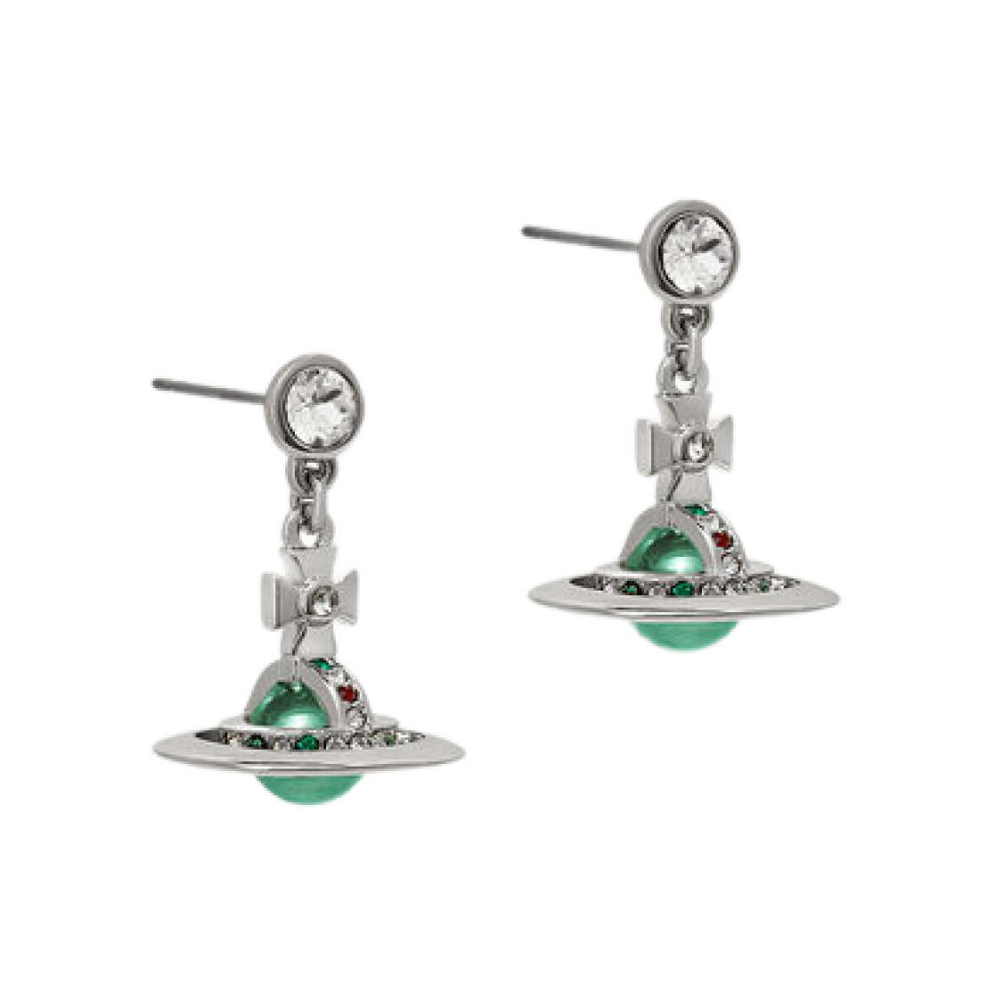 Vivienne Westwood New Petite Orb Earrings Platinum Mint Green CZ Emerald Siam Montana