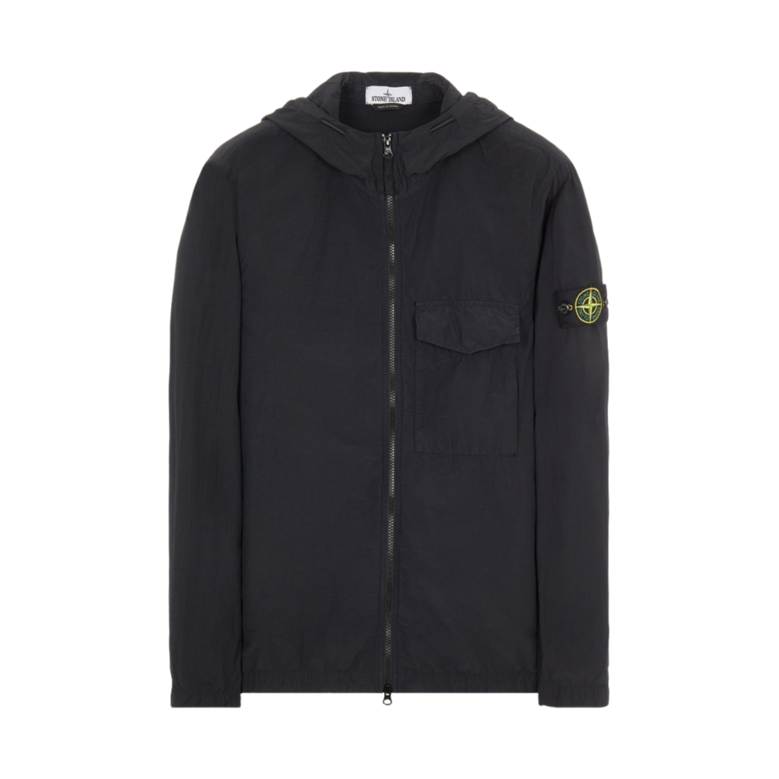 Stone Island 12402 Naslan Light Garment Dyed Hooded Overshirt Black - 22SS