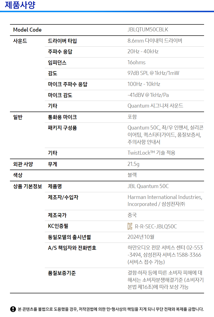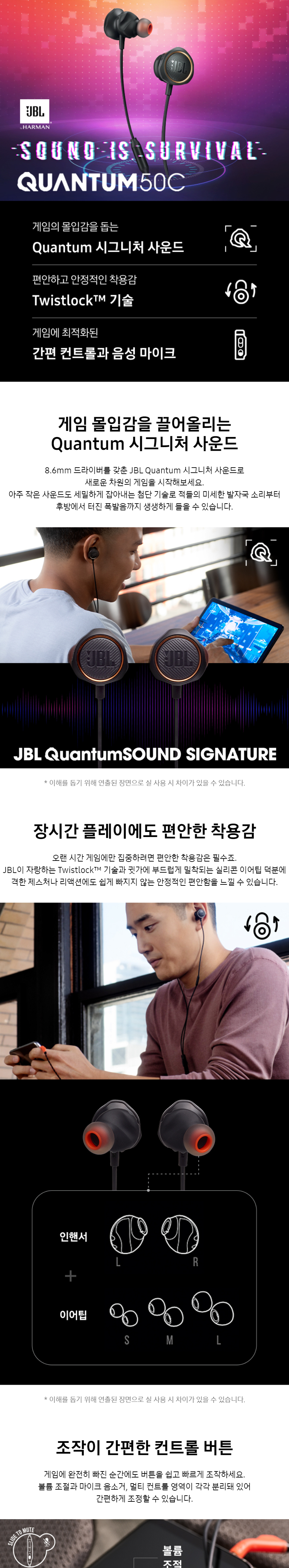제이비엘 QUANTUM 50C 유선 이어폰 블랙