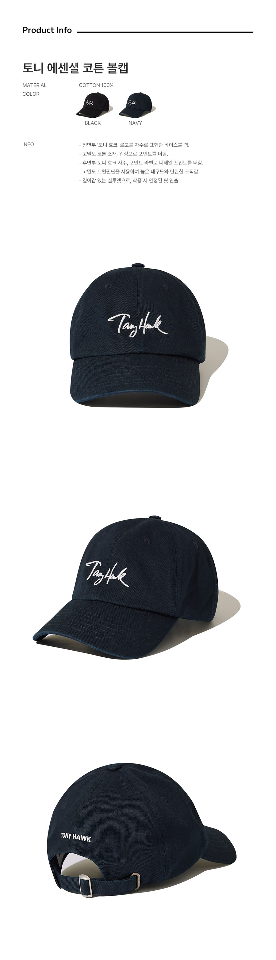 토니호크 토니 에센셜 코튼 볼캡 네이비