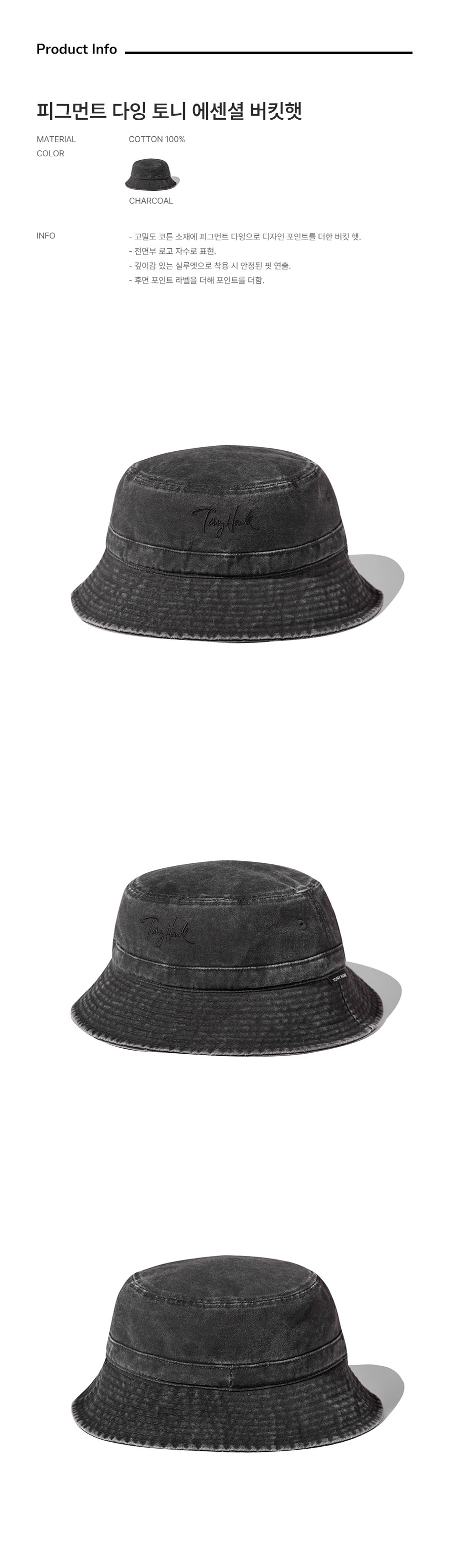 토니호크 피그먼트 다잉 토니 에센셜 버킷햇 차콜