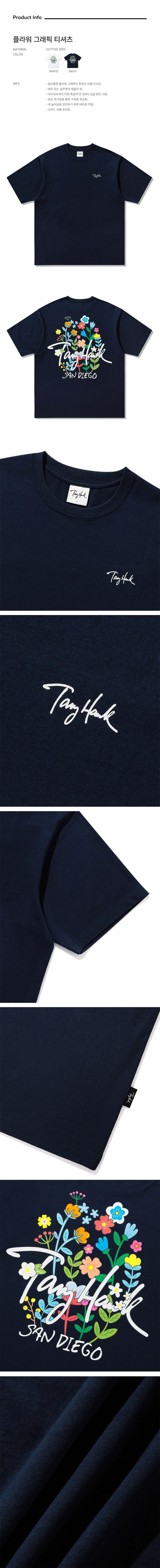 토니호크 플라워 그래픽 티셔츠 네이비